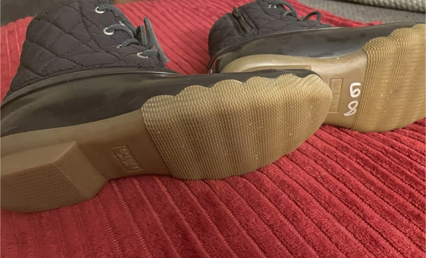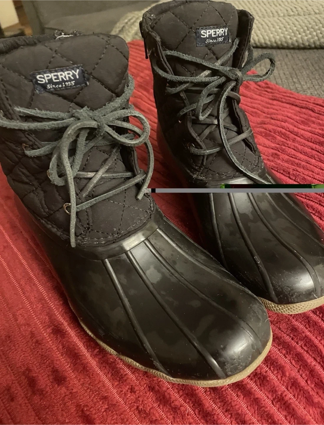 60Selling a pair of Sperry quilted duck boots in women's size 5M! These boots are perfect for keeping your feet dry and warm in wet weather. They feature a stylish quilted design and durable construction. The boots are made with PU/Textile uppers and all man-made materials. Made in Vietnam