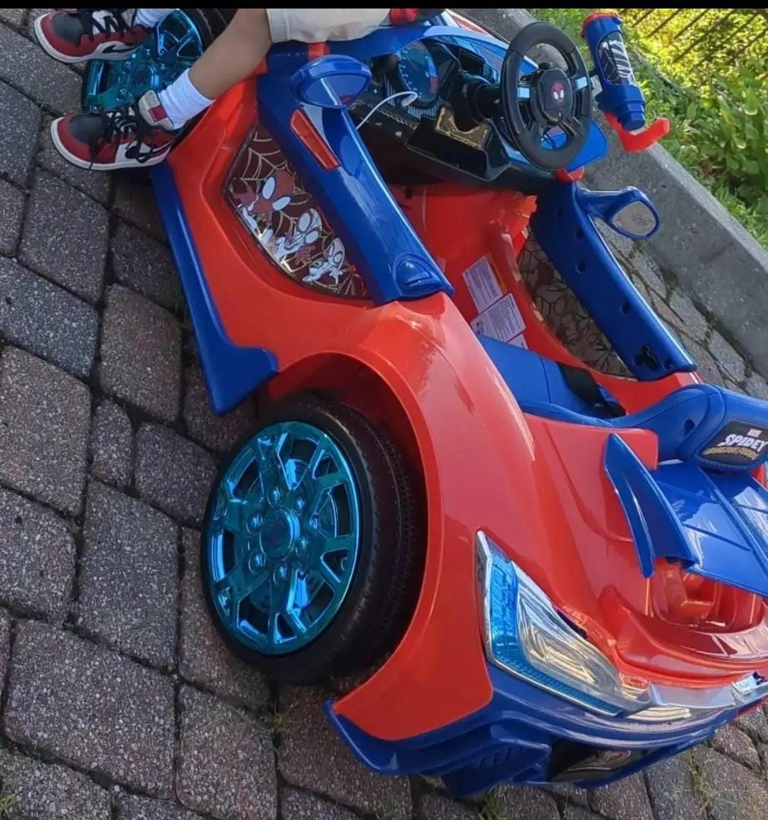 Selling a Spider-Man themed ride-on car! It's red and blue, and perfect for a little superhero in training