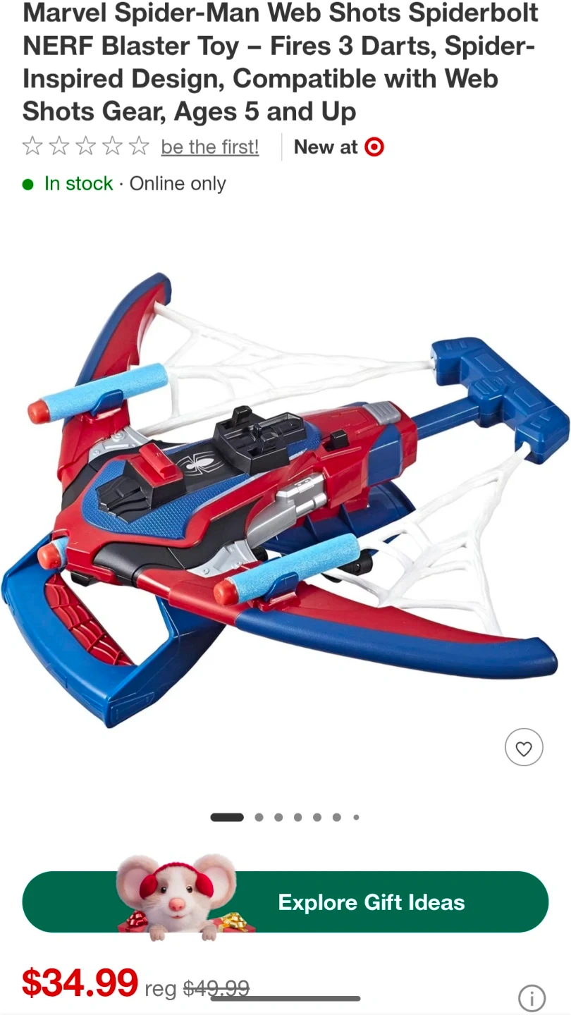 164This is a Spider-Man web shooter toy in red and blue! It's in great condition and ready for a new home. Perfect for any young Spider-Man fan! No Darts Included