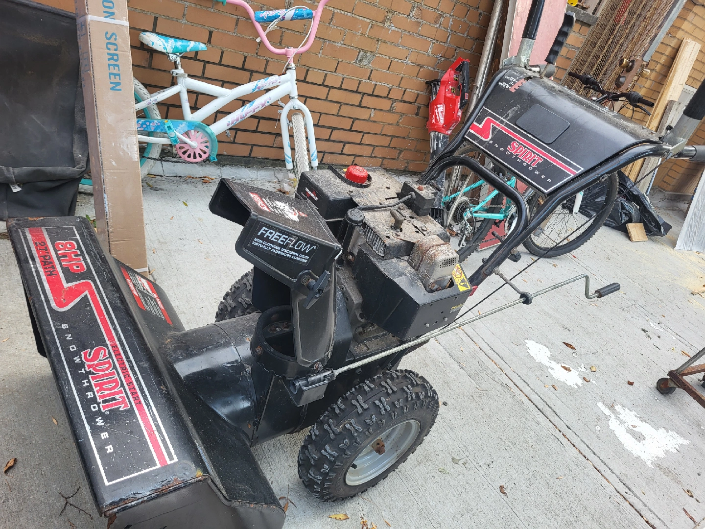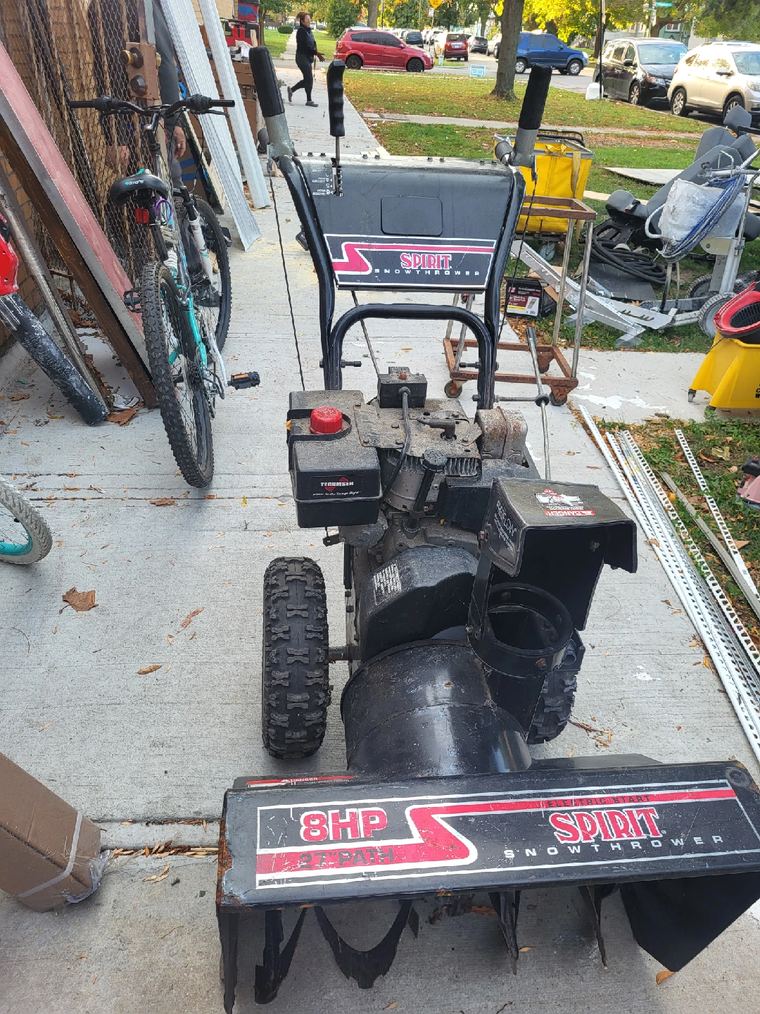 65Selling a Spirit 8HP snowthrower. It shows signs of wear from use but is still functional. Please see photos for details