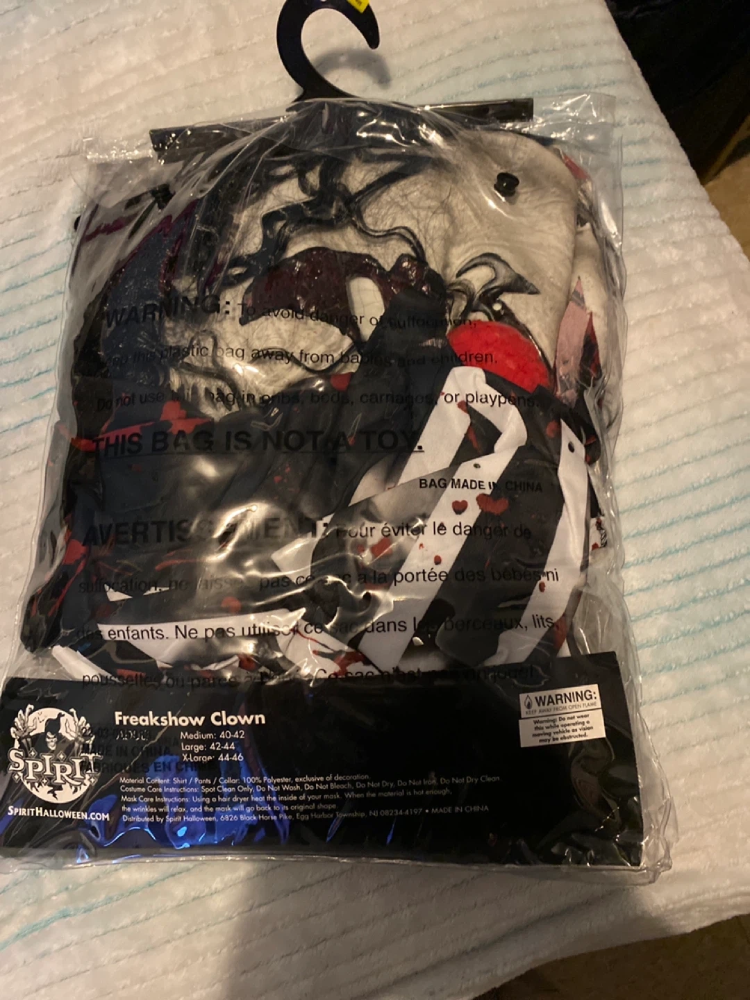 Get ready to scare with this Spirit Halloween Freakshow Clown costume! This adult-sized costume includes the shirt, collar, pants, and mask. The size is adult large. Originally $59.99!