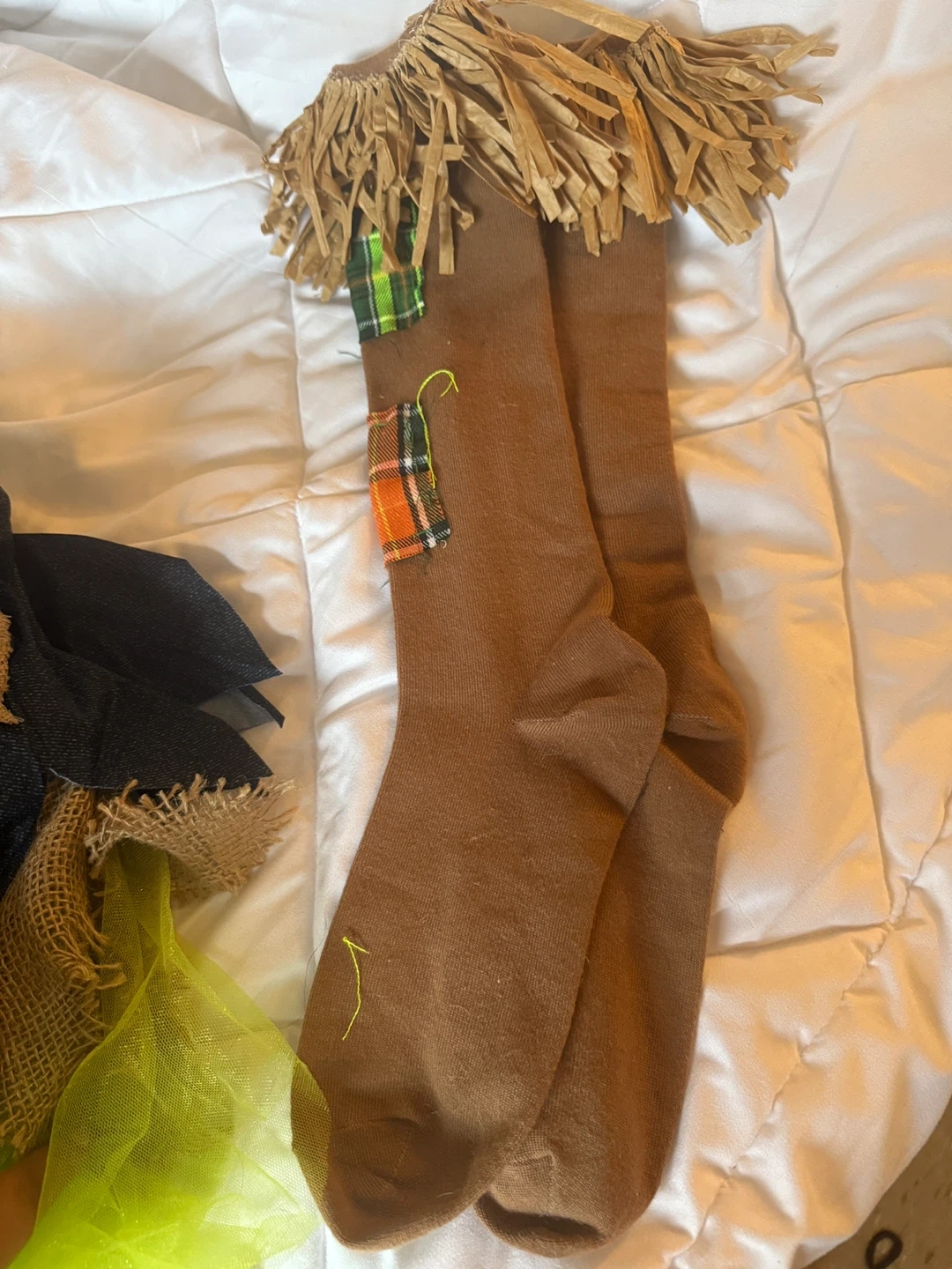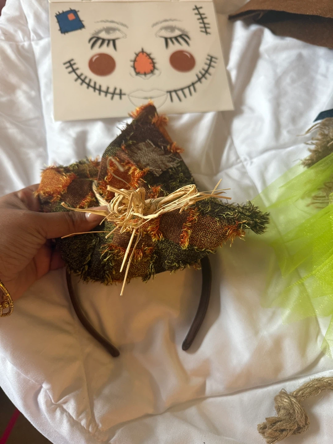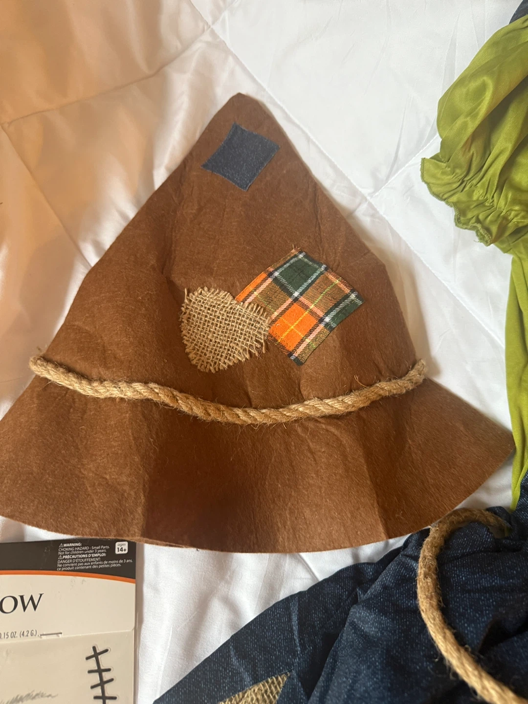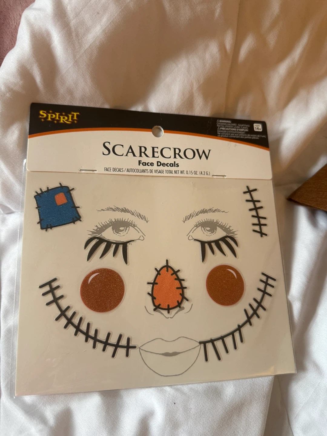 Get ready for Halloween with this adorable scarecrow costume set from Spirit Halloween! Includes a dress, hat, face decals, and socks. Perfect for a fun and festive look! Size S/M for women brand new