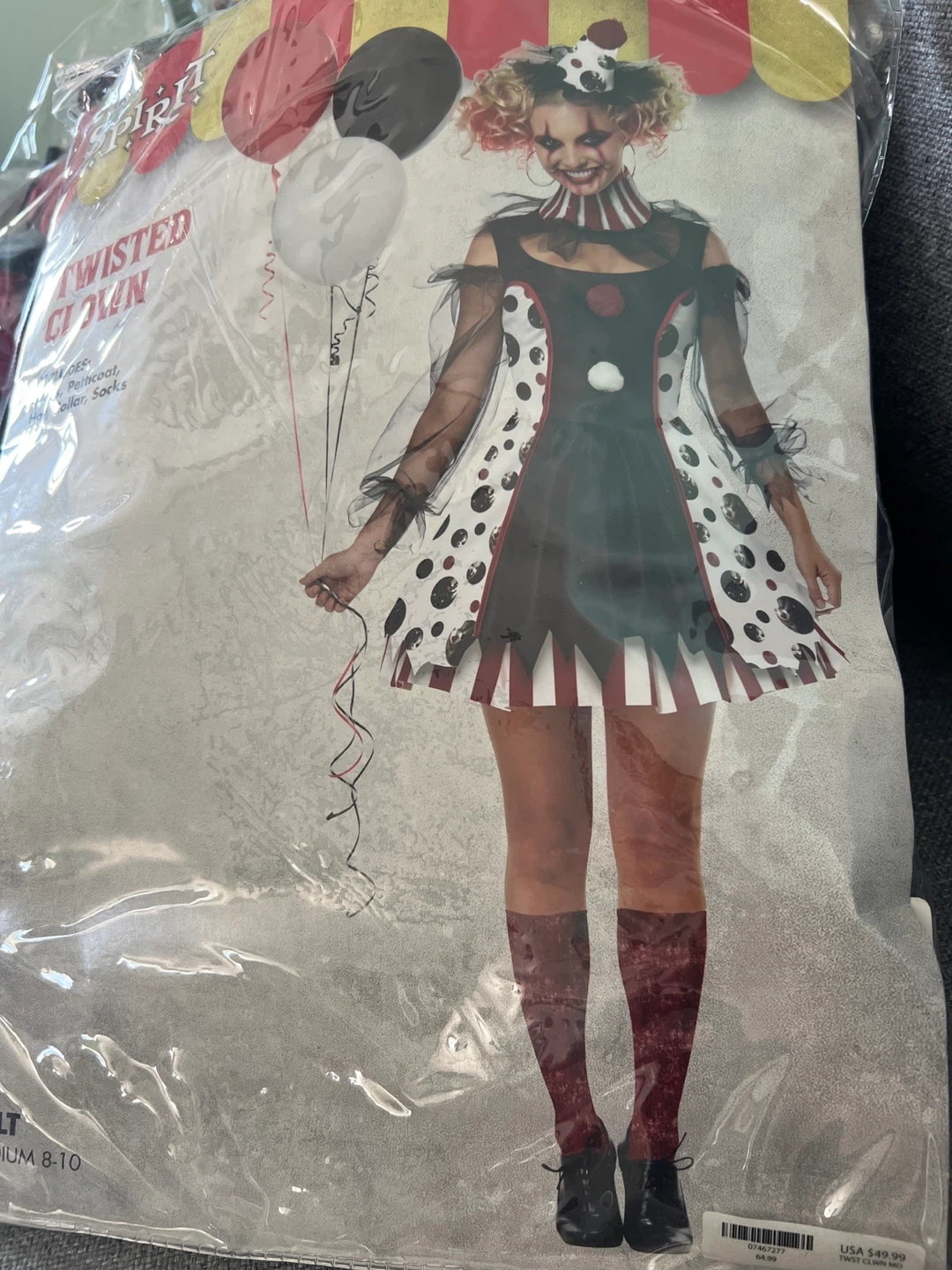 10¡Vendo disfraz de Payaso Retorcido de Spirit Halloween en talla mediana (8-10)! Incluye enagua, cuello de sombrero y calcetines. Precio original: $49.99 Selling a Spirit Halloween Twisted Clown costume in size medium (8-10)! The costume includes a petticoat, hat collar, and socks. Originally bought for $49.99