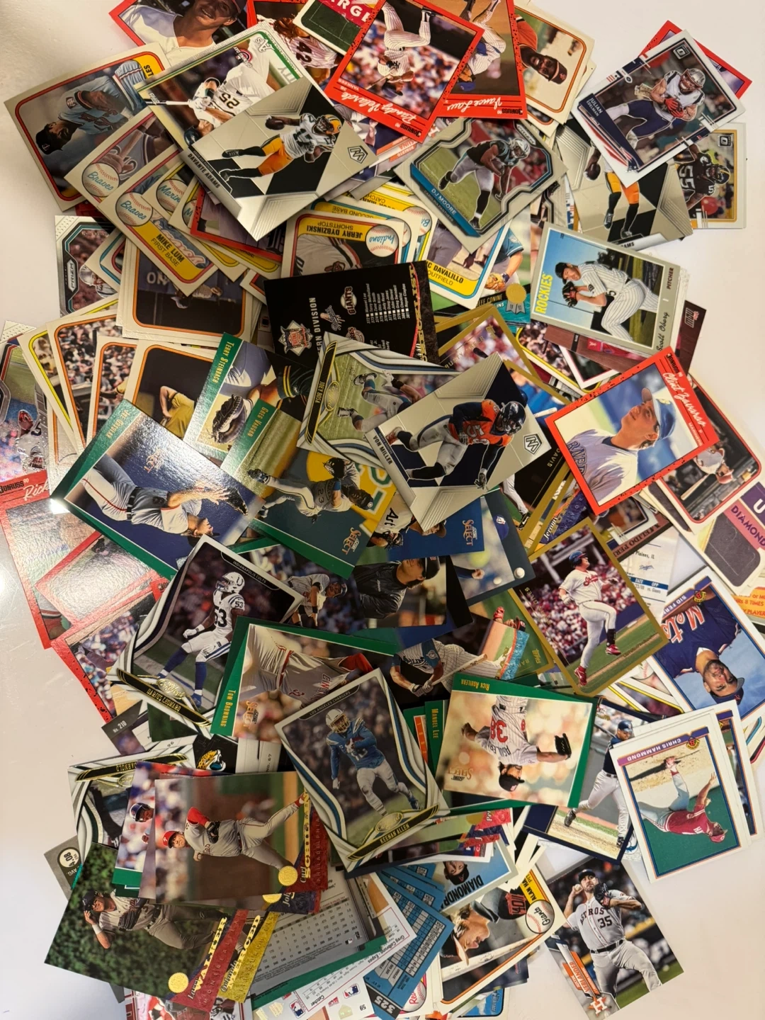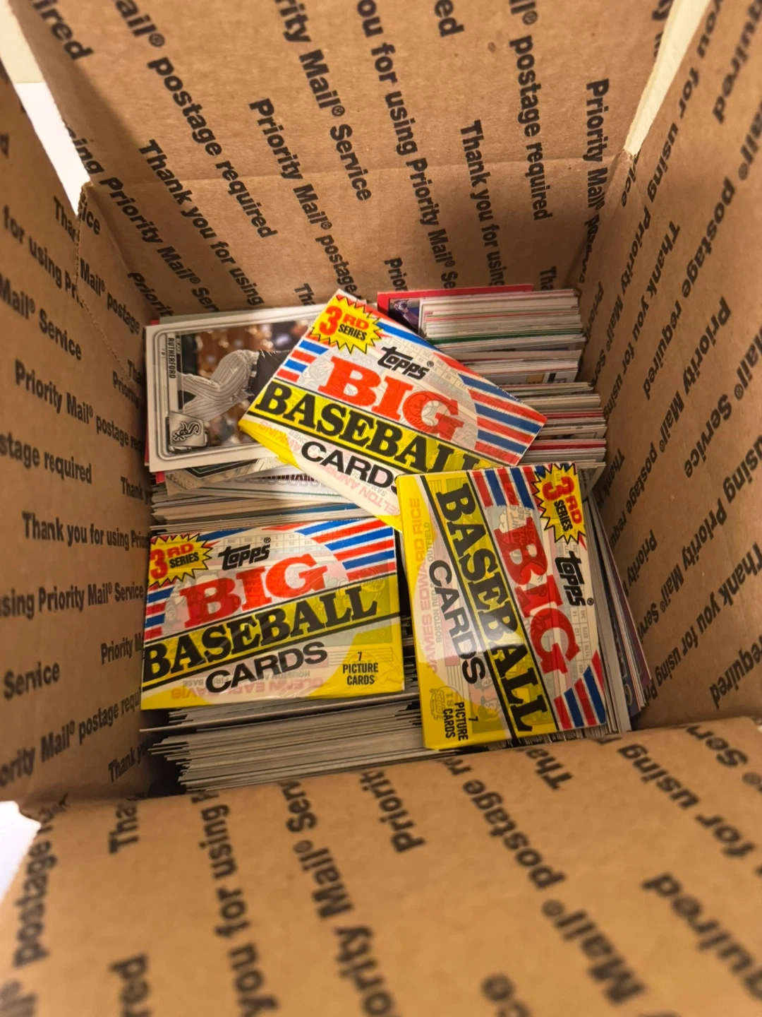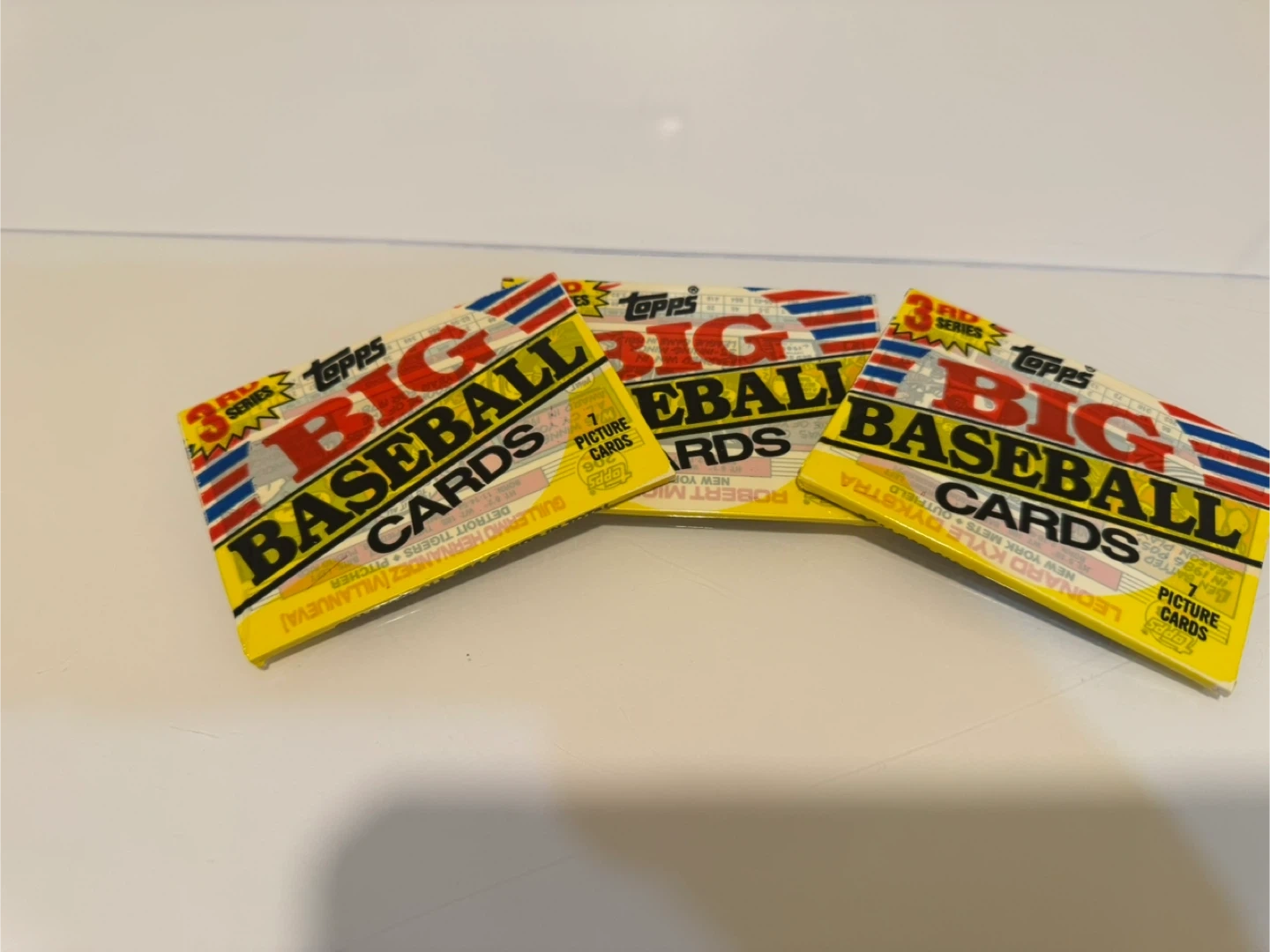 70Selling a collection of mix Sports cards Baseball , Football . Topps, Donruss, Fleer, Optic cards are in great condition. Included are 3 packs Topps Big Baseball Cards! These cards are from the 3rd Series. The lot includes both individual cards and unopened packs. Perfect for any baseball card collector! Located in Batavia $10 cash please only