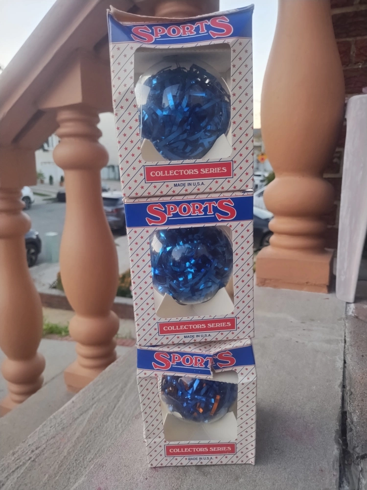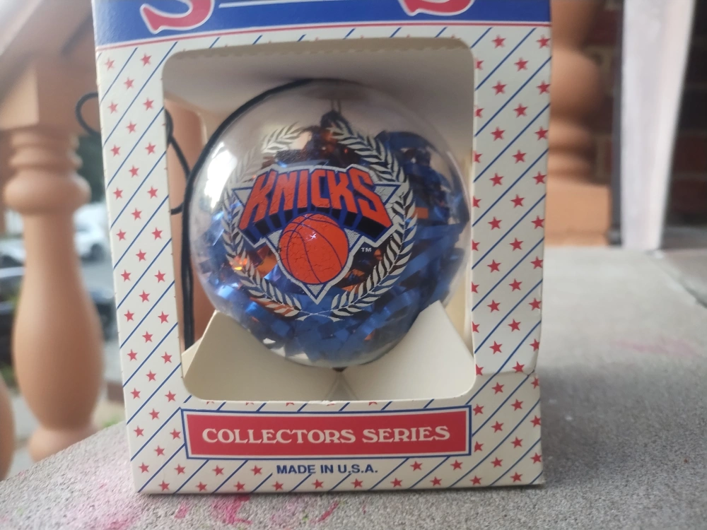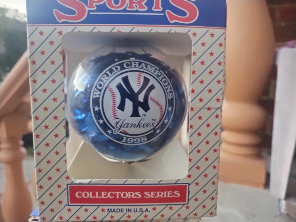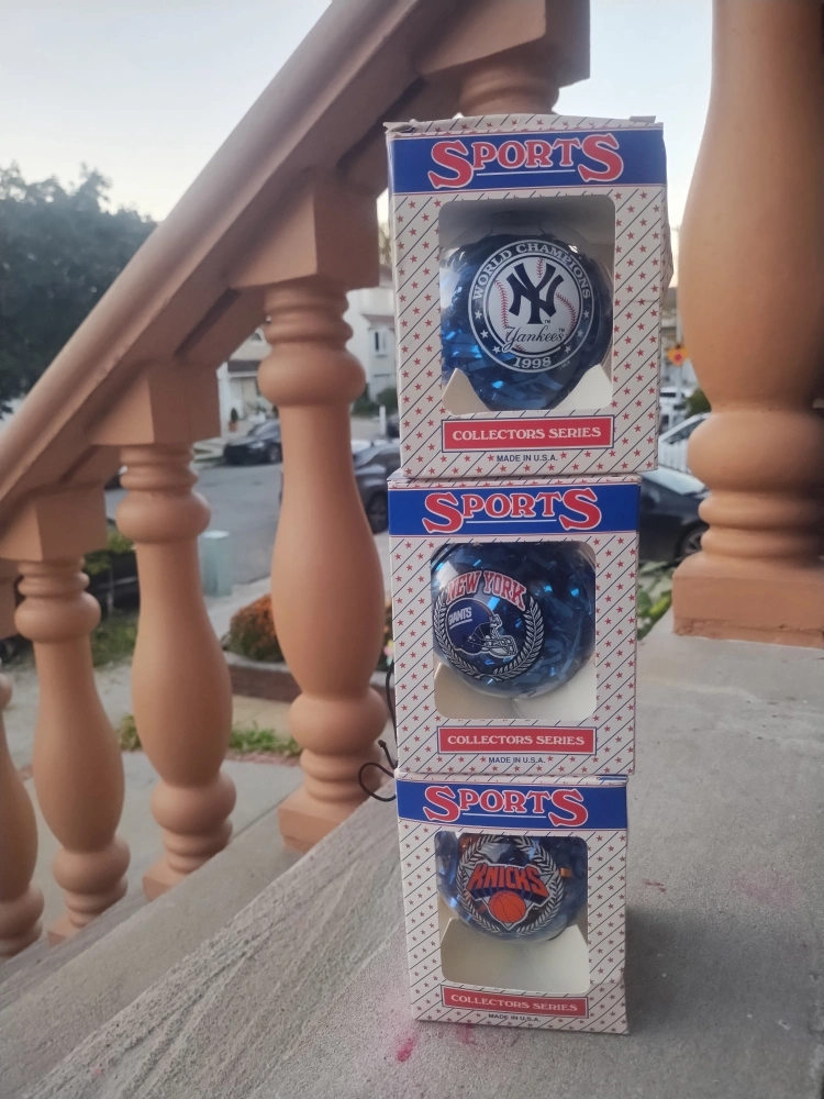 Selling a Sports Collector's Series ornament! These are in their original boxes and feature different sports teams like the Yankees, Knicks, and Giants. vintage early 2000s late 90 ornaments great for Christmas gift your favorite teams