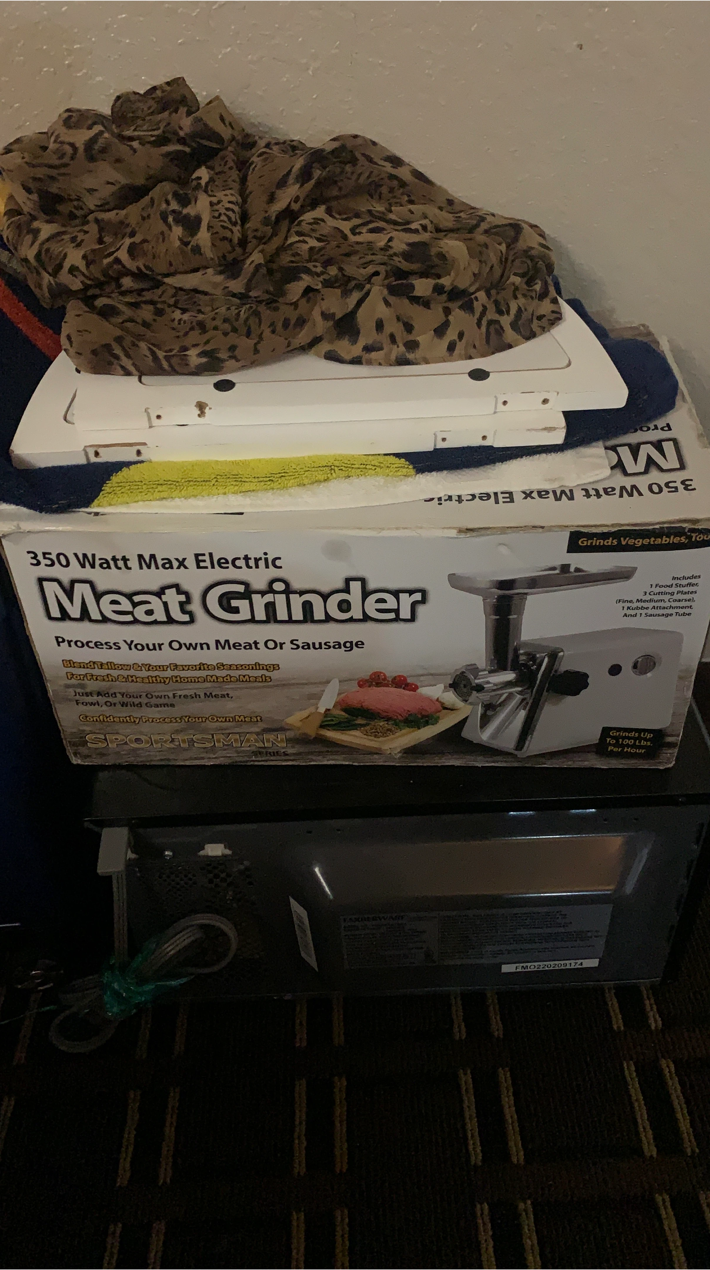 Selling a Sportsman Series 350 Watt Max Electric Meat Grinder. It can process your own meat or sausage. It also includes 1 food stuffer, 3 cutting plates, 1 kubbe attachment, and 1 sausage tube. It can grind up to 100 lbs per hour