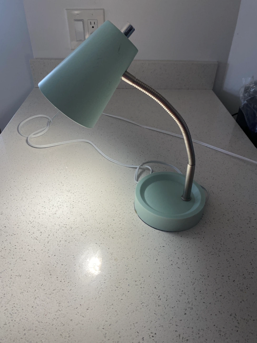 62Small bright side table LED spotlight. Mint green color in mint condition.