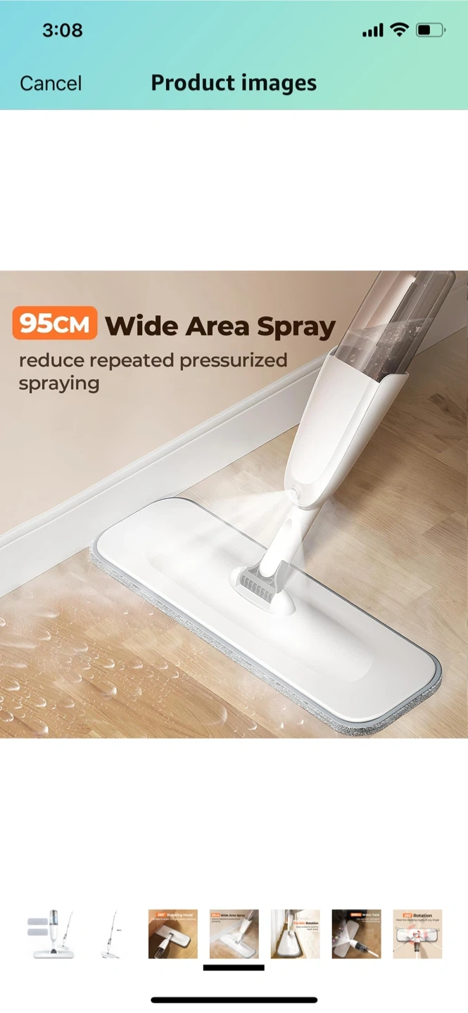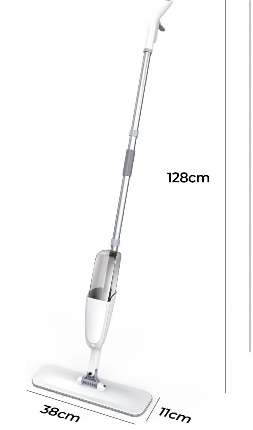 This is a brand new spray mop, model P4! It features a 95cm wide area spray and a 360° rotating head for flexible deep cleaning. The mop is 128cm tall and the mop head is 38cm wide and 11cm deep. It also includes replacement pads Pick up is upper east side.