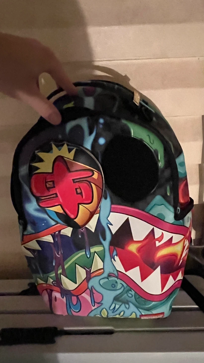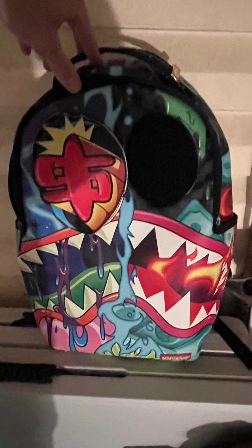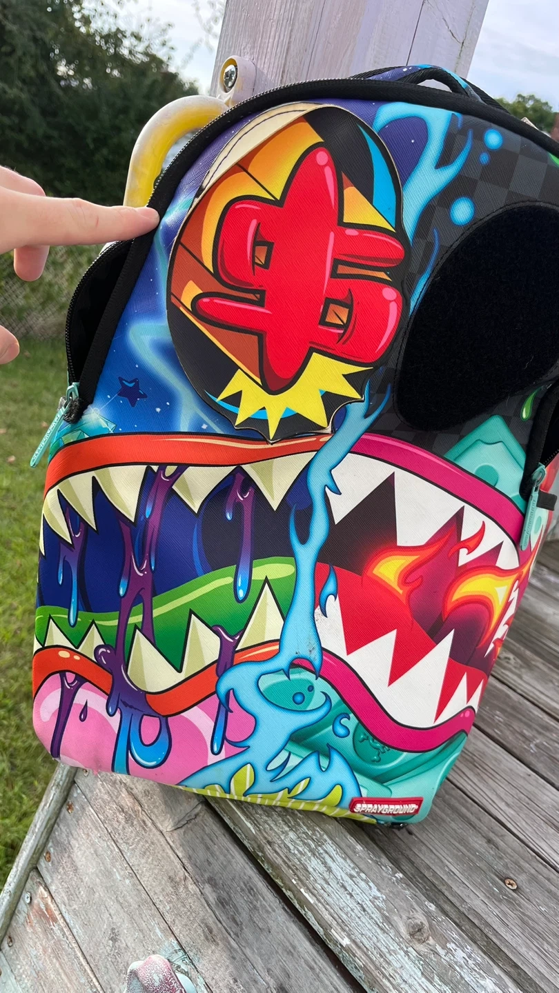 Selling a Sprayground backpack with a unique and colorful design! It has some signs of wear, but it's still in good condition for daily use.