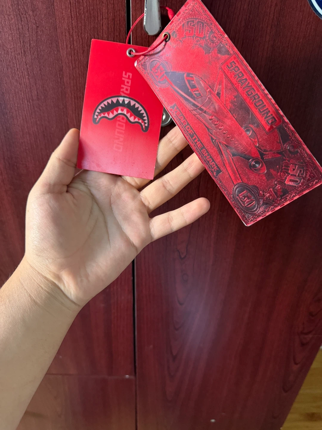 10Selling a Sprayground limited edition tag. The tag is red and has a shark design. It's in new condition!