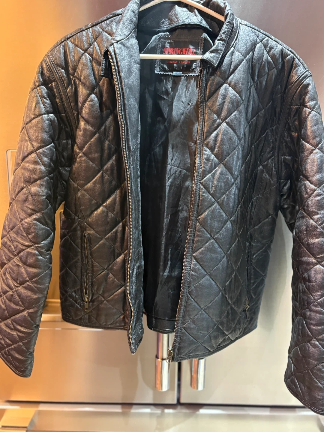 Selling a Springwell genuine leather jacket! It's a stylish quilted design in black. Great for adding a bit of edge to your wardrobe