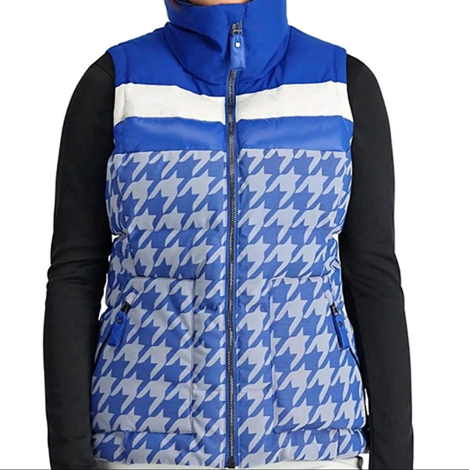 92Experience the perfect blend of style and warmth with the Spyder Eastwood 700 fill down Puffer Vest. This vest features a striking houndstooth pattern and a quilted design. The Eastwood Down Vest is for the woman who is always on the go and needs to look stylish while staying functionally warm and dry while doing so. Whether packing this piece for a trip to the mountains, wearing it to the office, or just wanting to keep things stylish while getting around town, the Eastwood Down Vest’s warmth and versatility have you covered no matter what. Insulated with 700 fill traceable duck down, featuring EXO Shield stretch technology. MSRP is $175