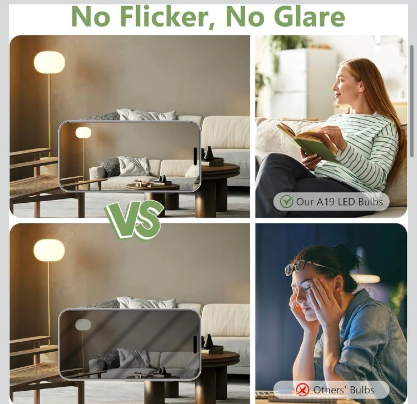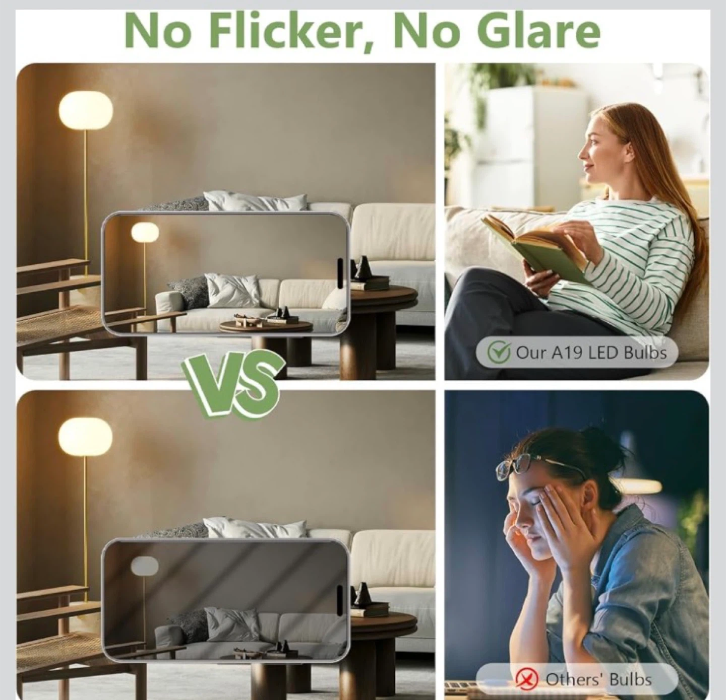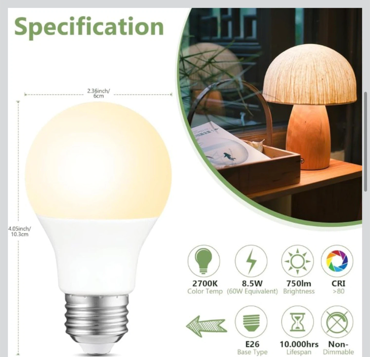 A19 LED Light Bulbs, 60W Equivalent Soft White 2700K, 750 Lumens Non-Dimmable LED Bulbs, Efficient 8.5W, 10000 Hours Long-Lasting E26 Base Bulbs for Bedroom Living Room Kitchen, 4 Pack
