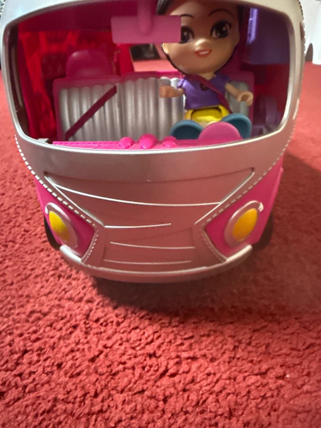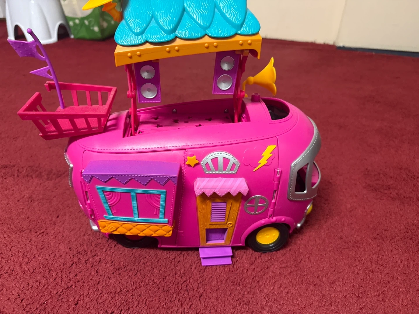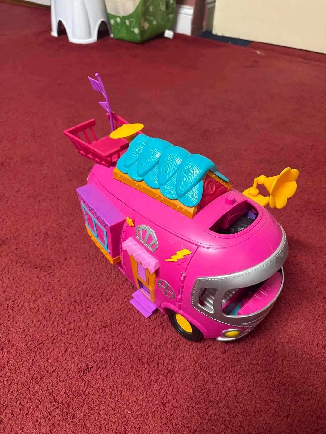 Selling a Trolls World Tour Rock N' Roll RV toy. It's pink with a blue roof and some fun accessories. Perfect for any Trolls fan!