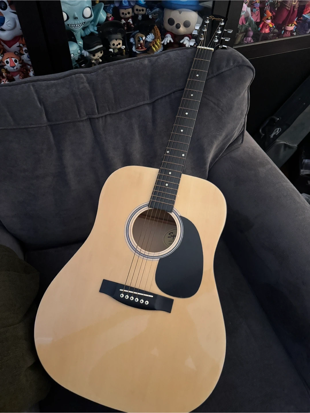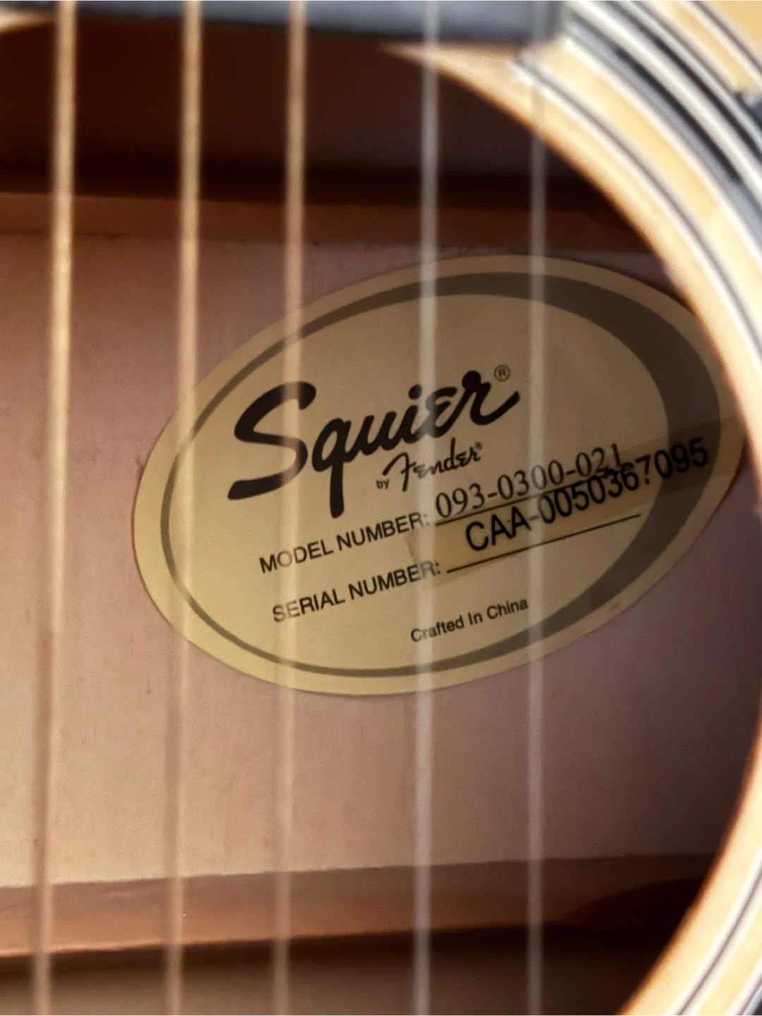 10Selling a Squier by Fender acoustic guitar. It's in great condition and comes with a case! The model number is 093-0300-021