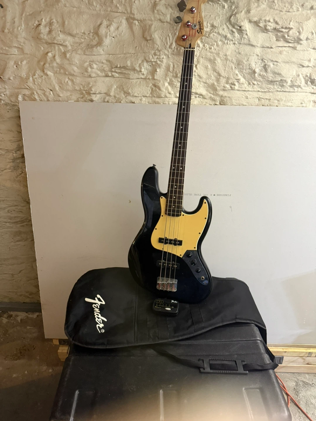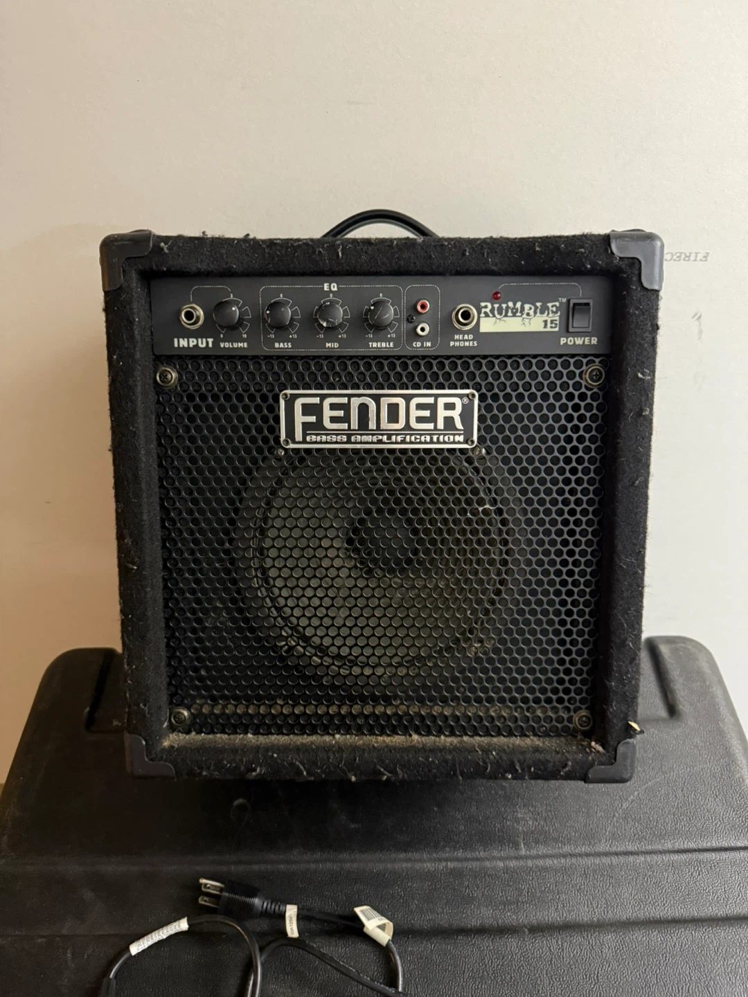 Selling a Squier by Fender Jazz Bass guitar along with a Fender Rumble 15 bass amplifier. Both are in good condition and ready to play! The bass comes with a Fender gig bag for easy transport.