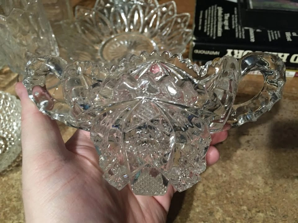 LOT OF 13 VINTAGE GLASS BOWLS CREAMERS GOBLETS