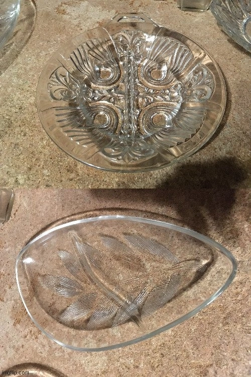 DIVIDED RELISH CANDY DISH FOUR FOOTED DEPRESSION GLASS. GOOD CONDITION 7 1/2" X 8 1/4"