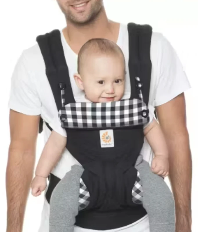 Ergobaby carrier in great condition! It's black with a cute gingham pattern on the upper part. Perfect for keeping your little one close and comfortable while you're on the go