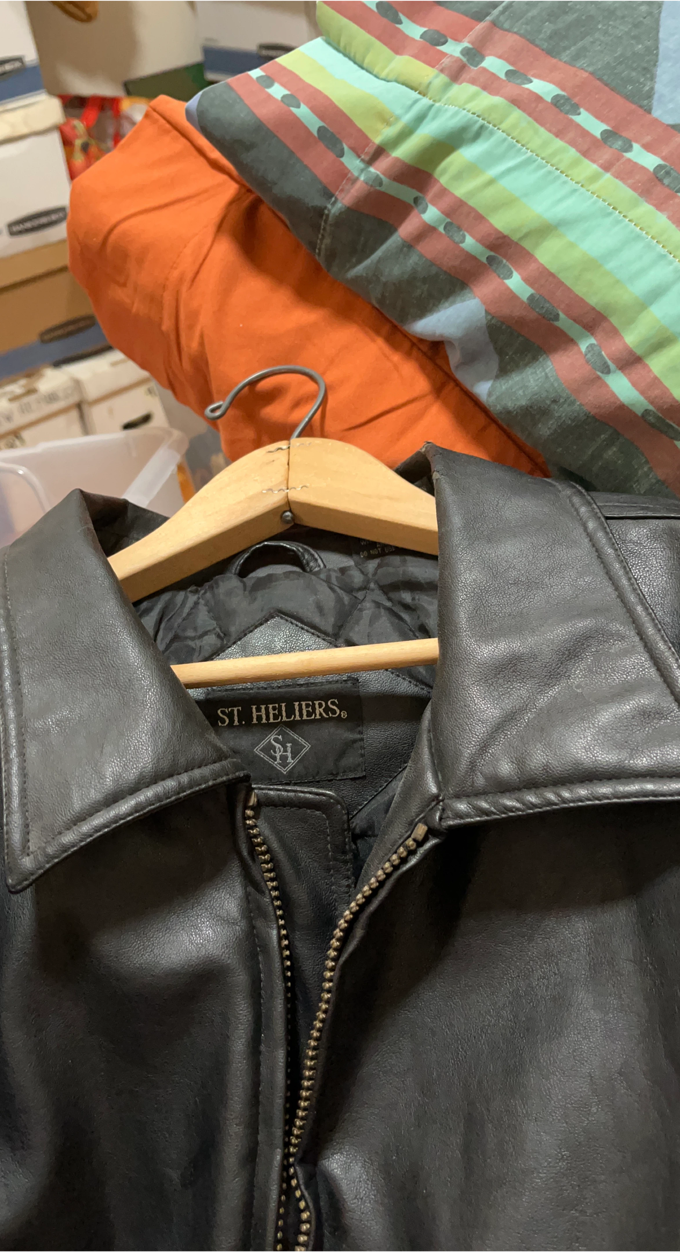 60Selling a black leather jacket from St. Heliers. It's in good condition and ready for a new home!