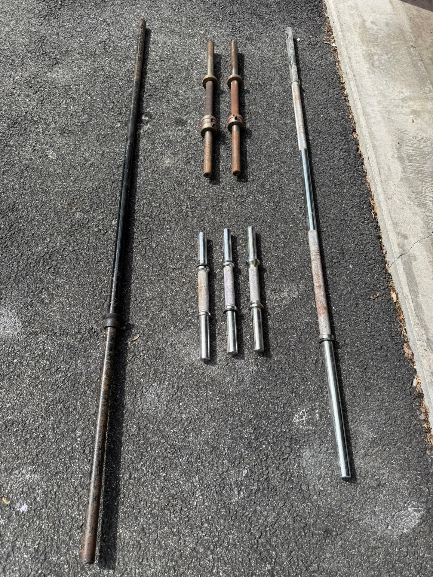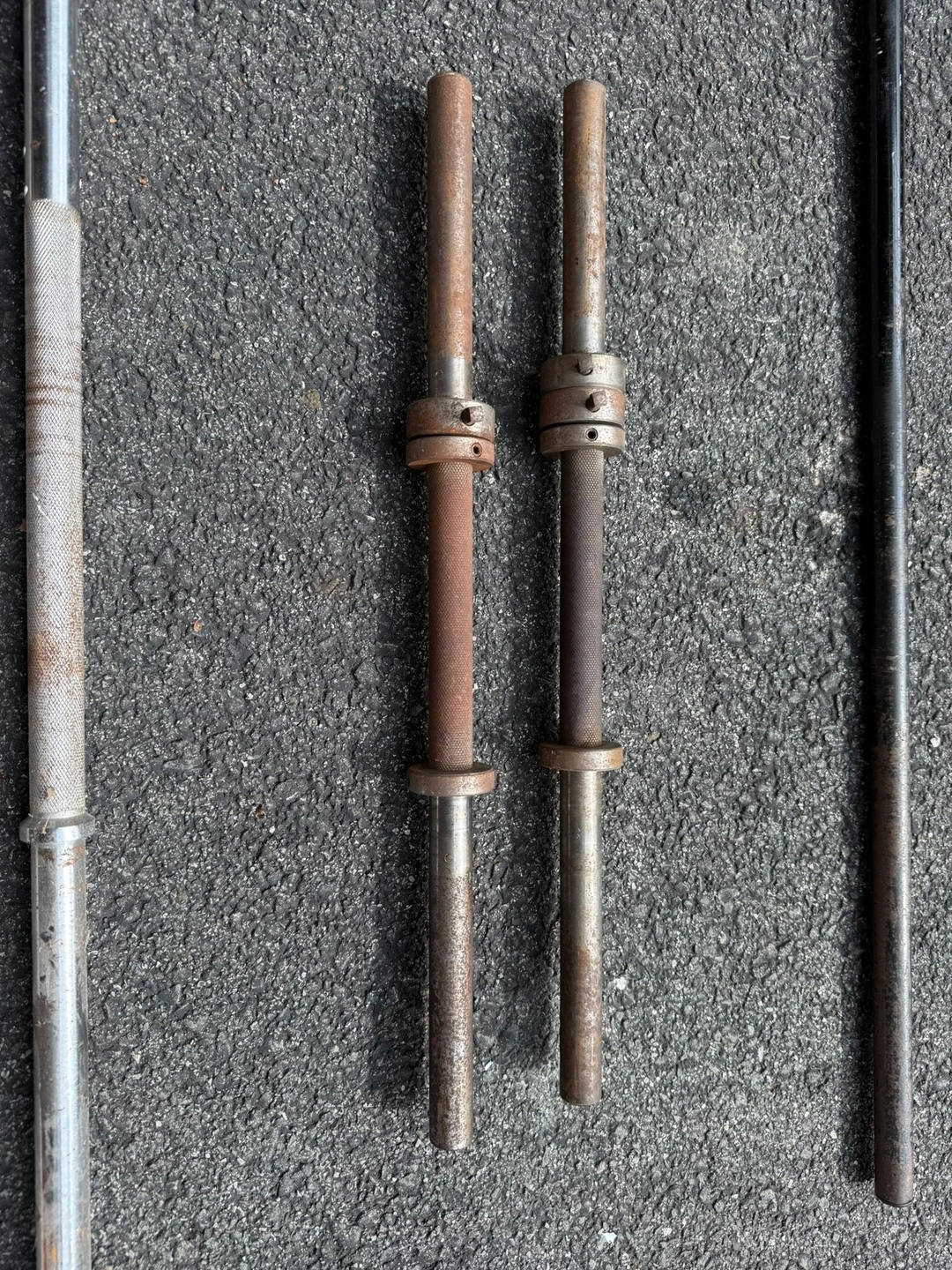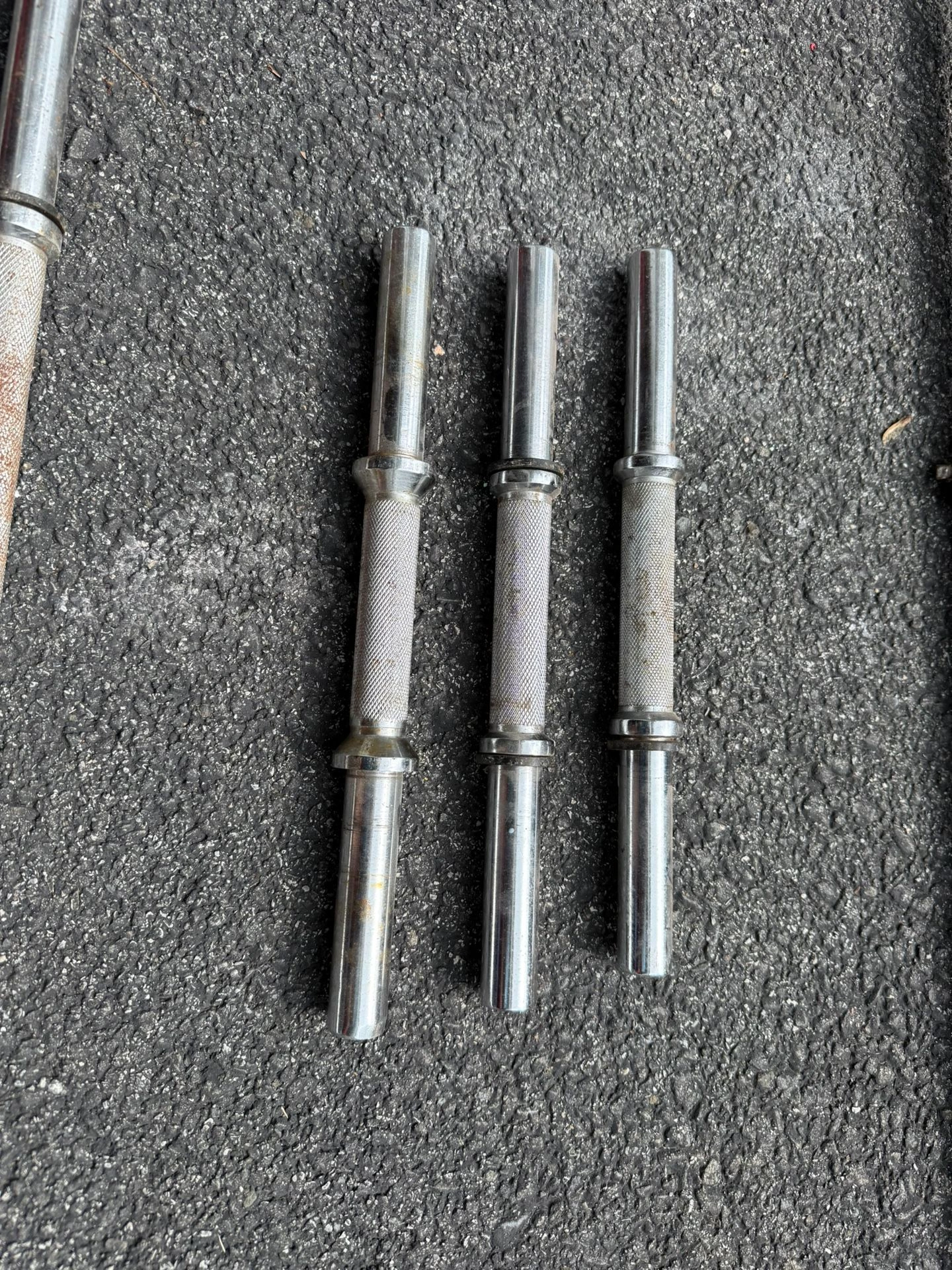 15Price is for EVERYTHING I HAVE 2 one inch Barbells and 5 one inch Dumbbell Handles 2 of the dumbbells are extra long so you can fit more weight! You will need collars for these bars. Some have them some don’t. They can be bought cheap on Amazon I MAY HAVE PLATES AVAILABLE AS WELL Type: Standard
