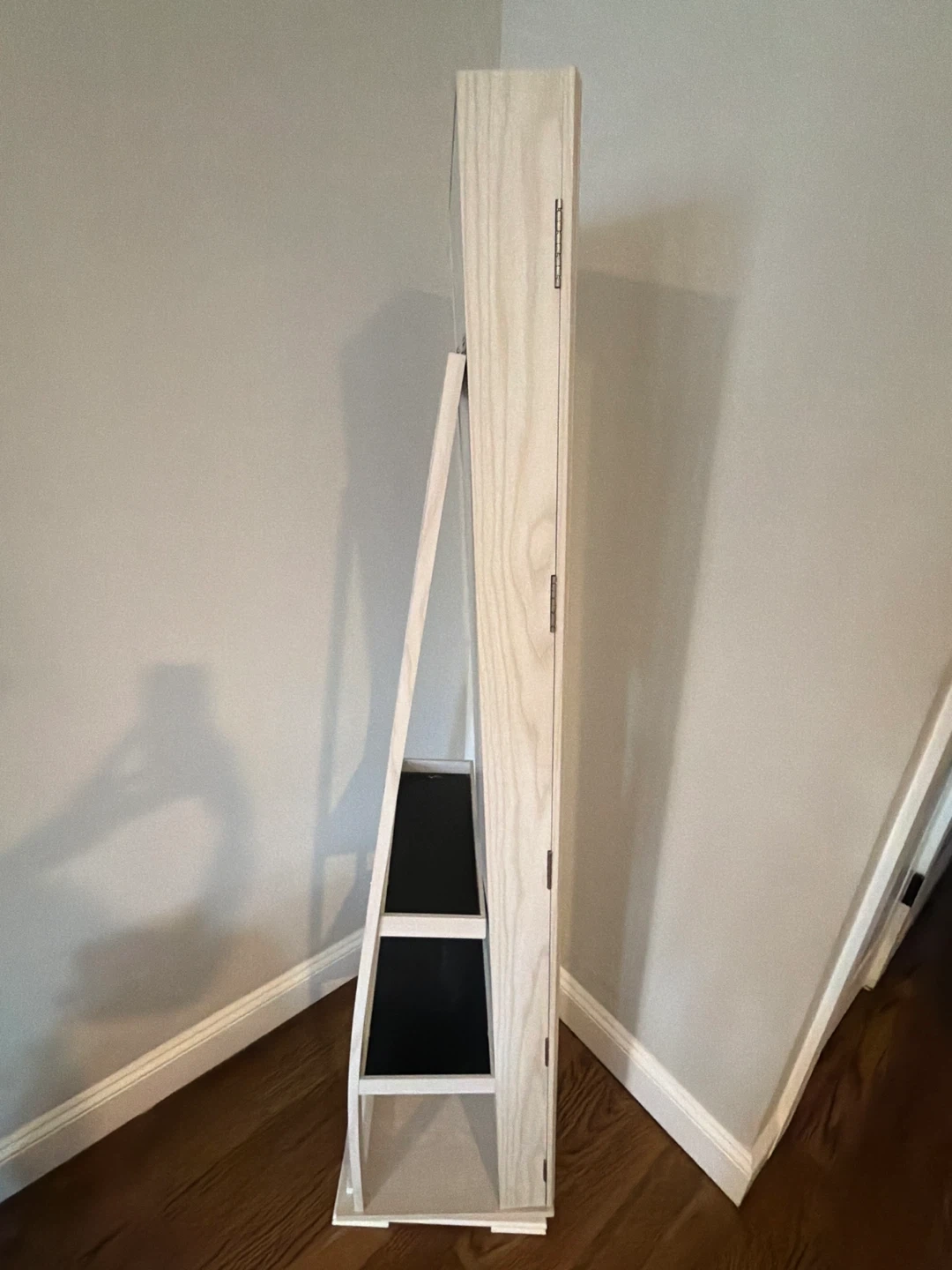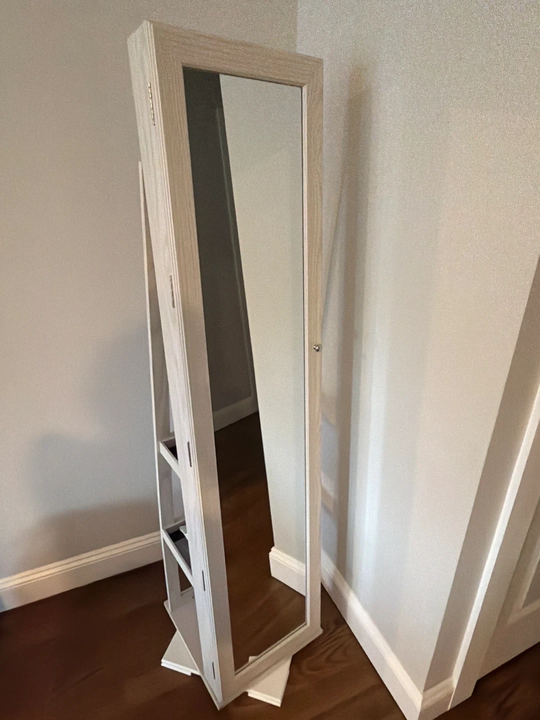 60Here's a standing jewelry armoire with a mirror! It's a great way to keep your jewelry organized and easily accessible. This armoire is perfect for any bedroom or dressing room and adds a touch of elegance to your space