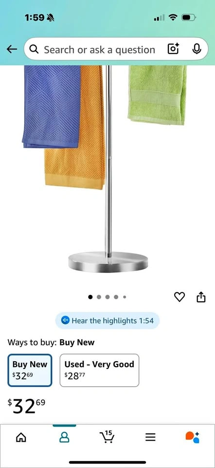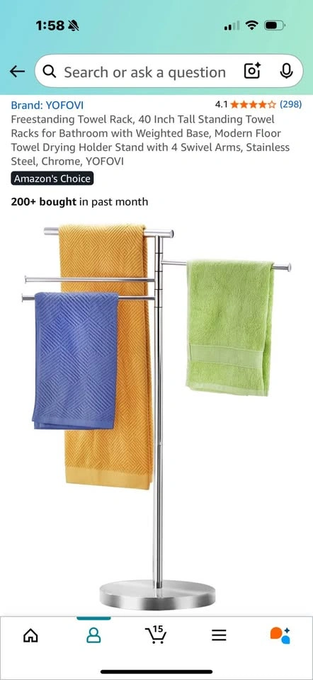 Like new standing towel rack - sturdy, simple and attractive. Stainless steel. Perfect condition.