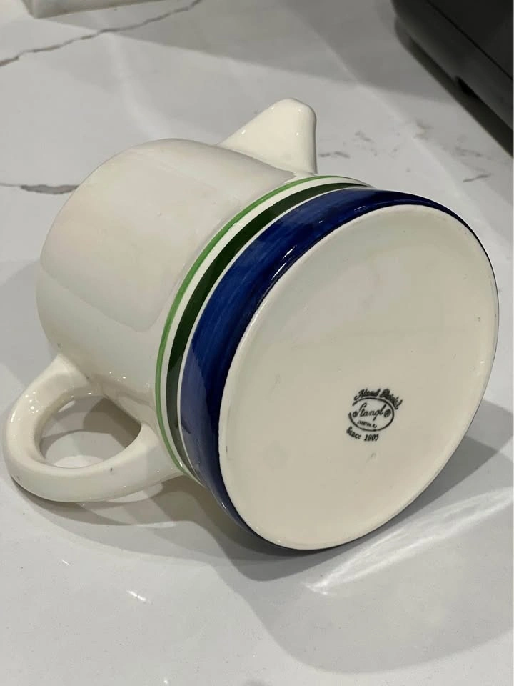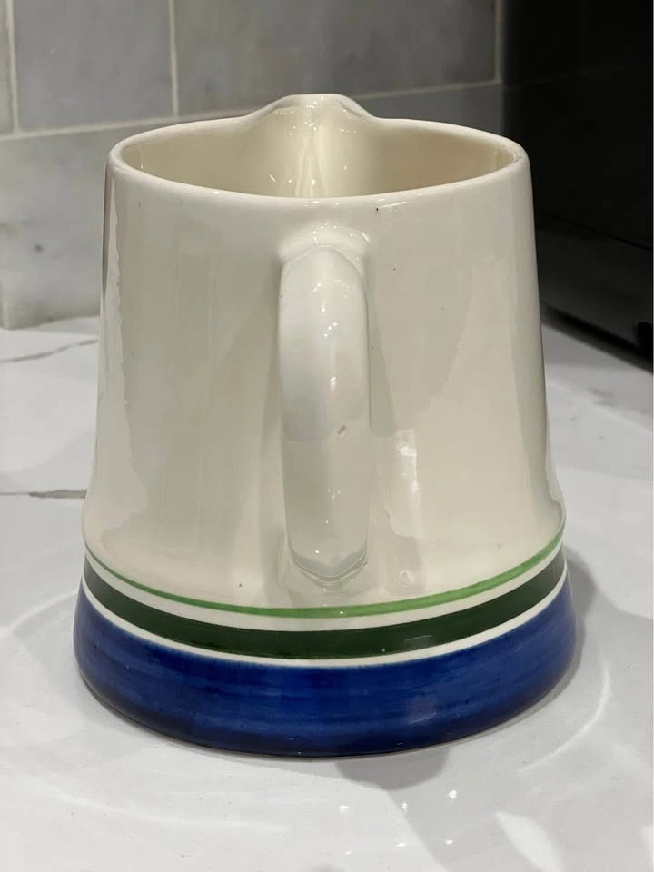 98Hand Painted Stangl 32oz Ceramic pitcher. 5” tall 5” base 7” spout to handle