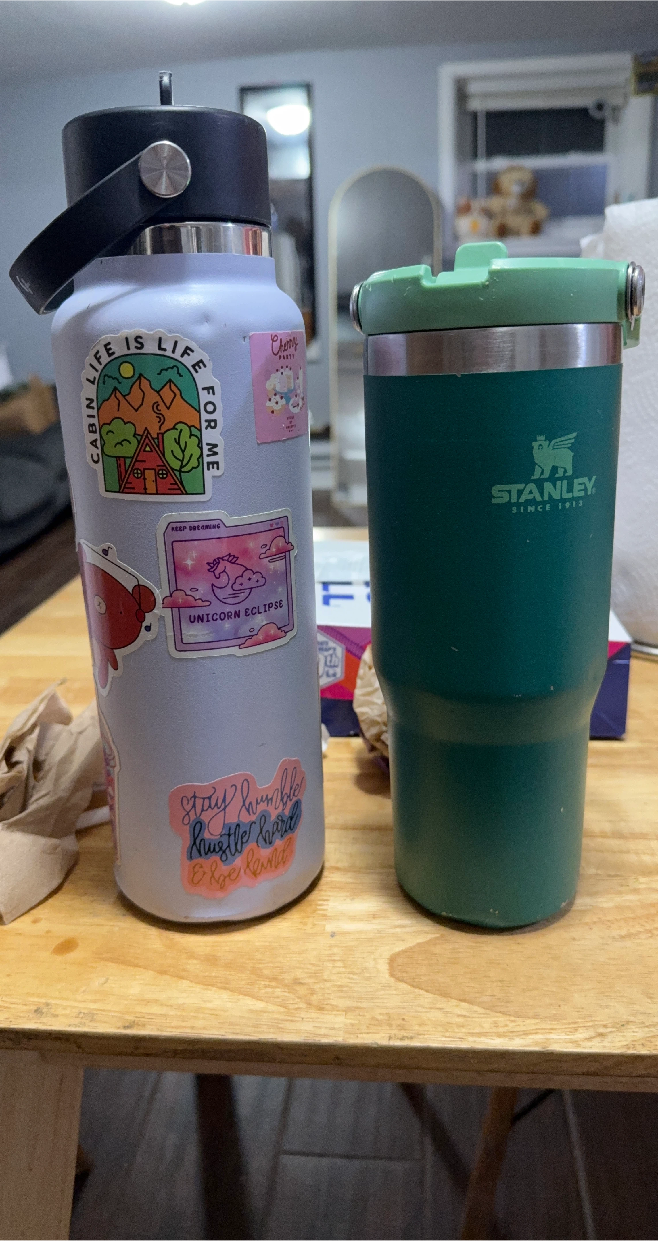 10Selling a green Stanley Adventure Quencher tumbler! It has some stickers on it. Perfect for staying hydrated on the go!