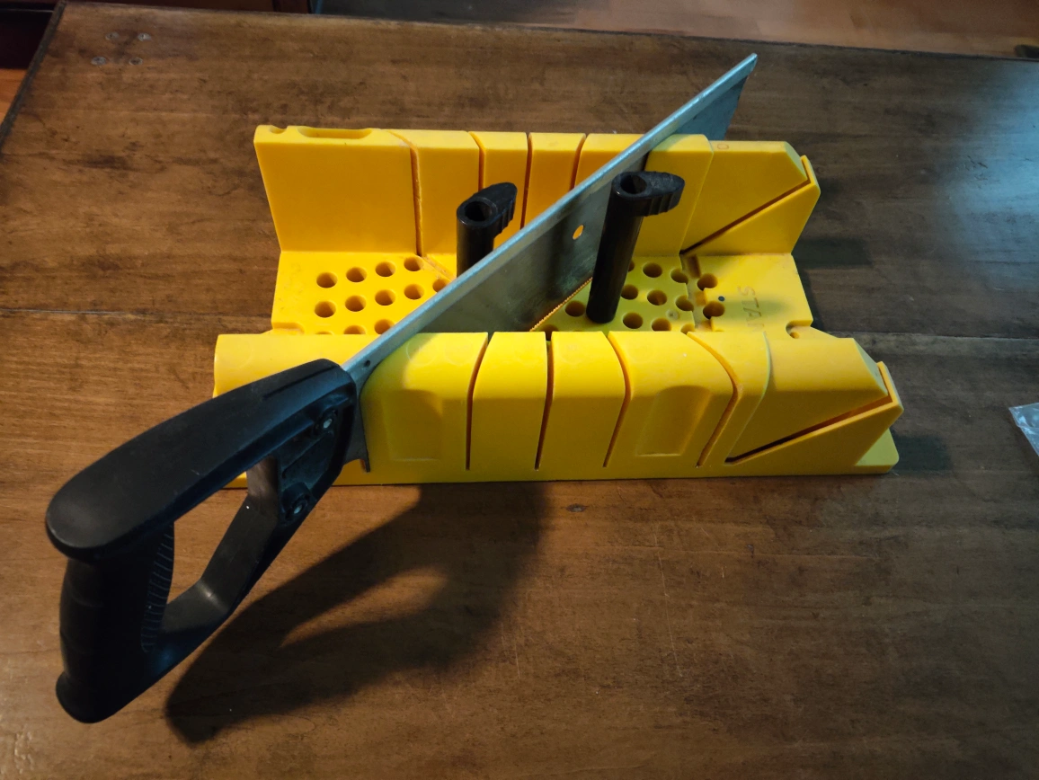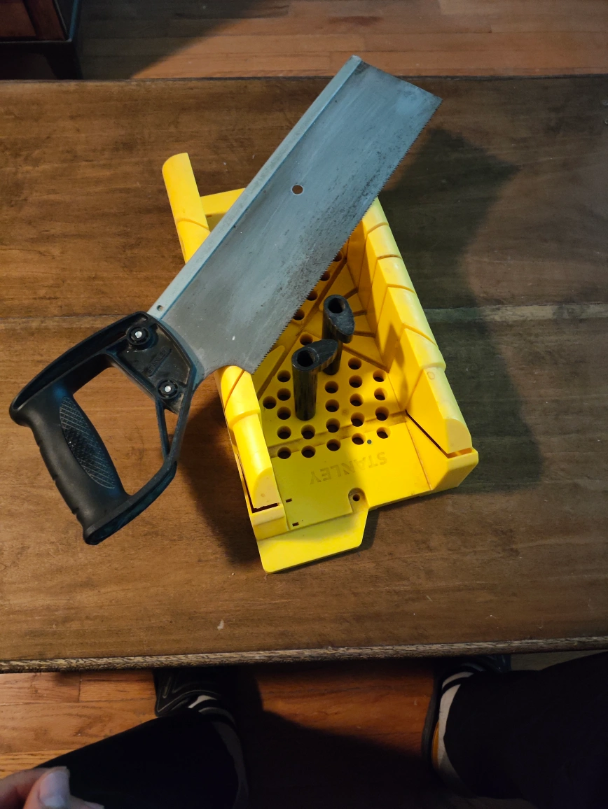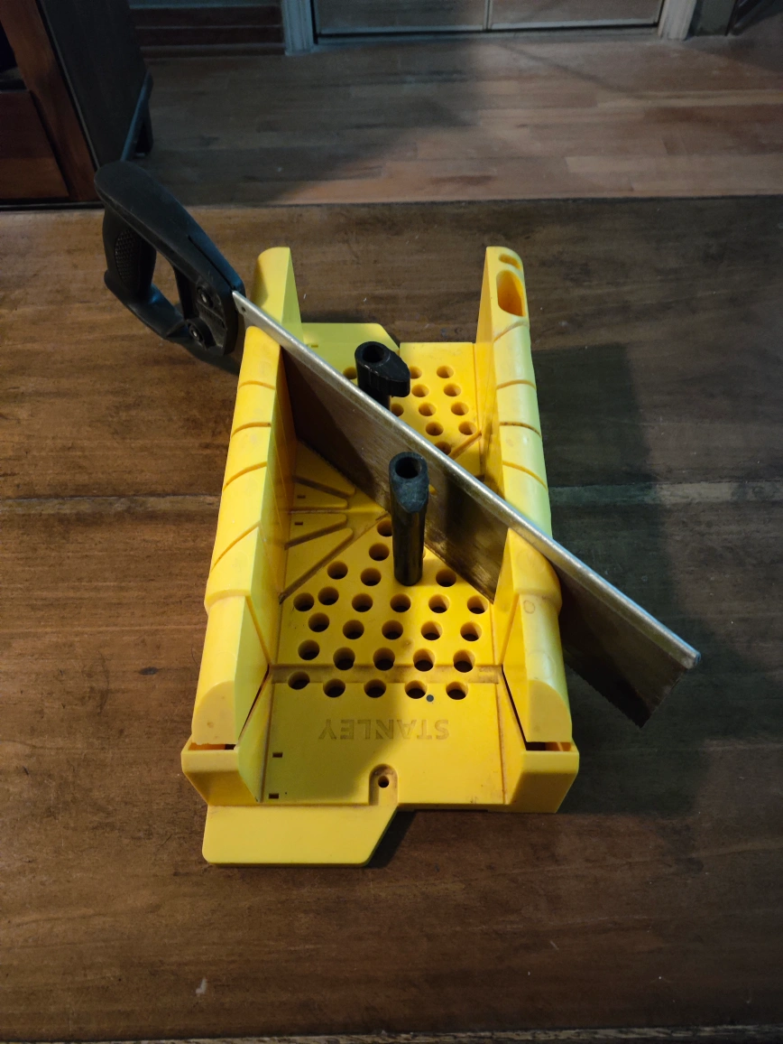 Selling a Stanley miter box with saw. It's in good condition and ready to help with your next project! The set includes the yellow miter box and saw.