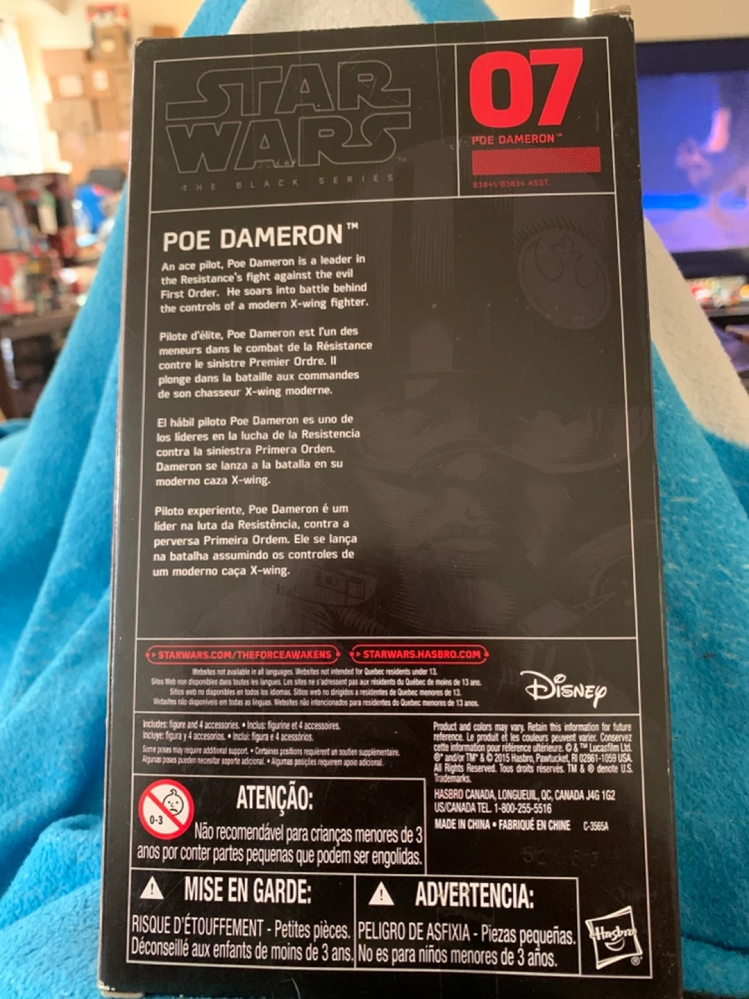 Selling a Star Wars The Black Series Poe Dameron action figure! It includes four accessories and is recommended for ages 4 and up. It's in great condition and comes in the original box, perfect for any Star Wars collector