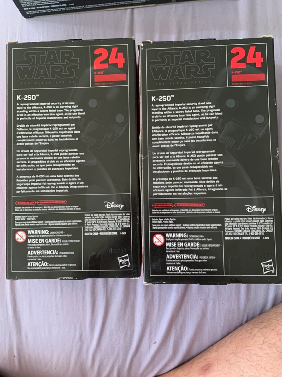 Selling two Star Wars The Black Series K-2SO action figures! Both are brand new in box and ready for a new home. These figures are from the popular Black Series line and feature detailed design. Recommended for ages 4+