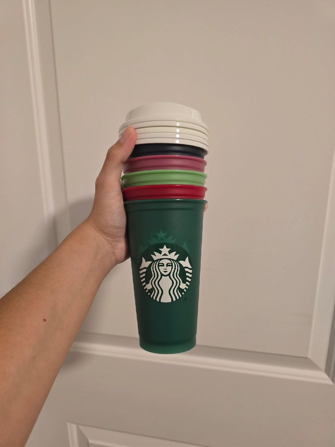 Selling a stack of Starbucks reusable cups! They come with their respective lids. Great for everyday use and reducing waste. They are in great condition!