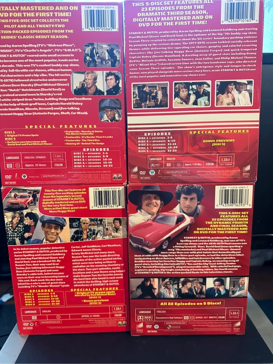 PRICE IS PER SEASON Selling the complete Starsky & Hutch DVD collection! This five-disc set features all twenty-two action-packed episodes from the classic detective series. Enjoy hours of thrilling television with Starsky, Hutch, and their iconic red-striped Gran Torino!