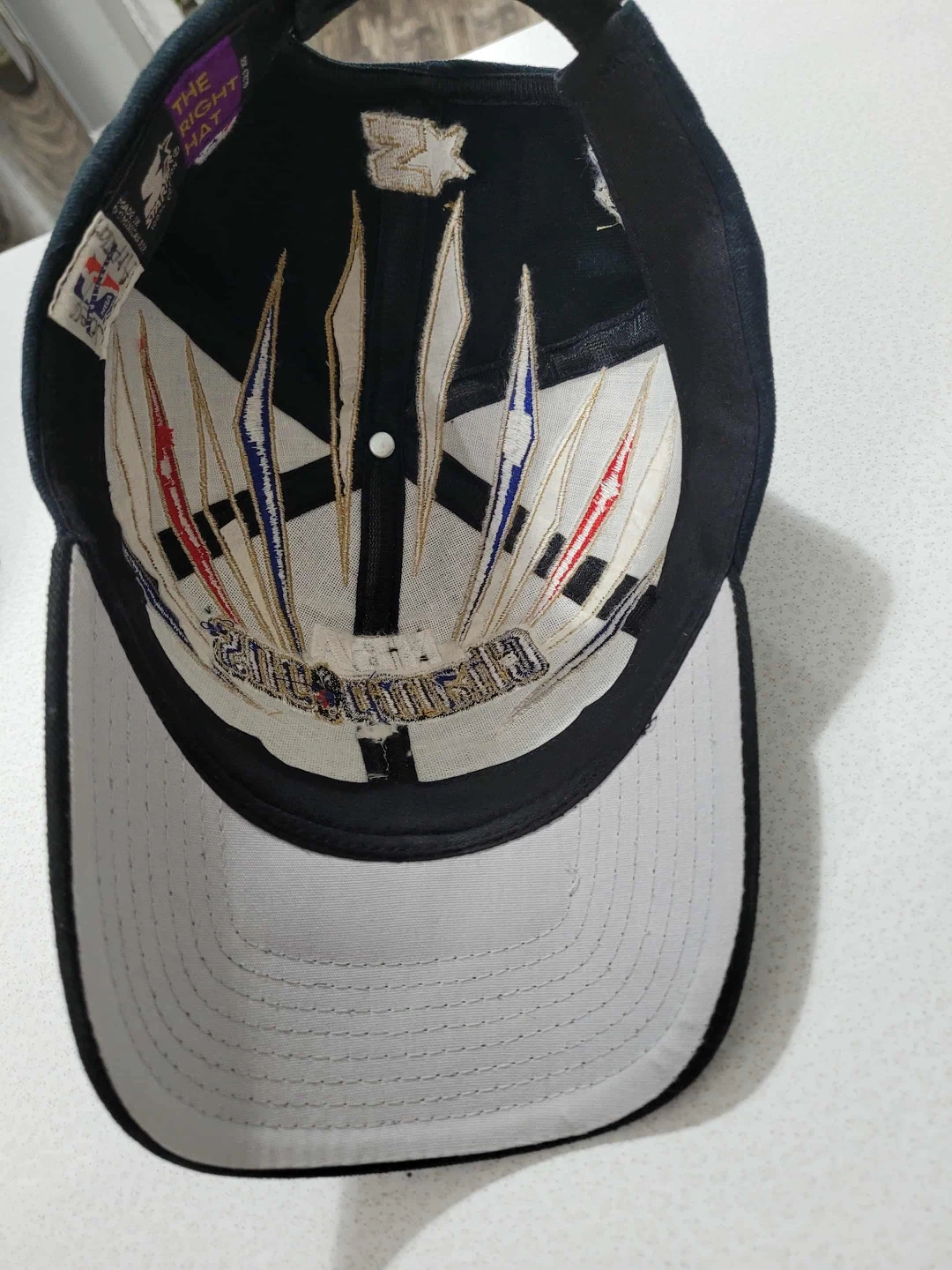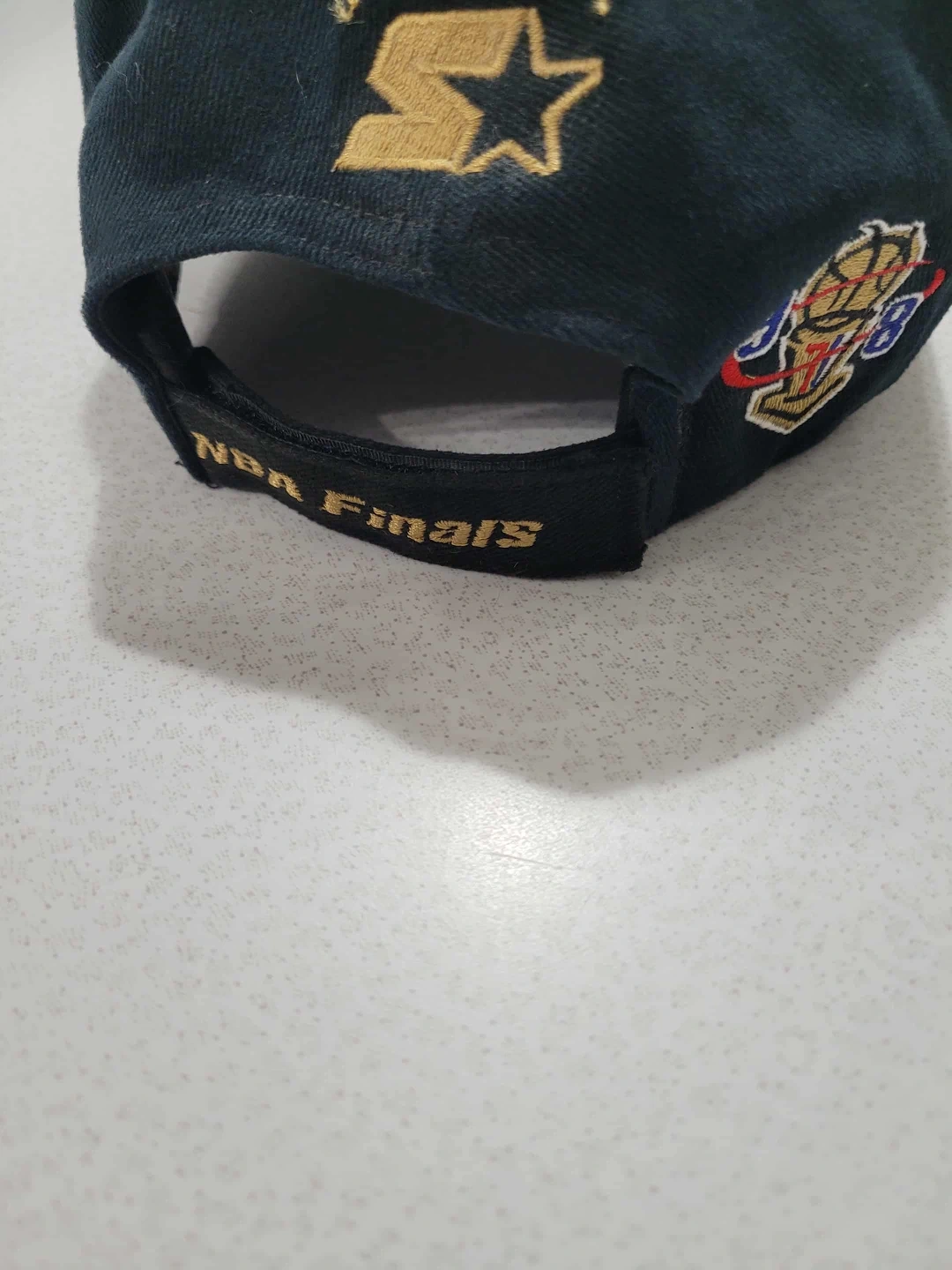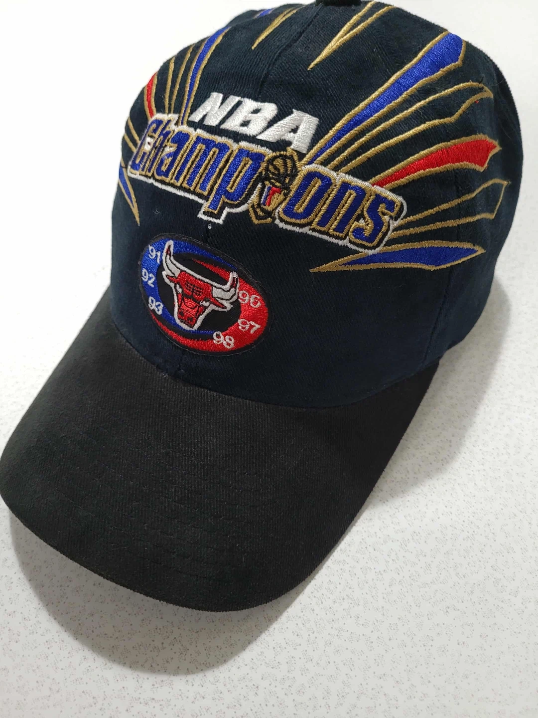 Selling a Starter brand NBA Champions Chicago Bulls hat. It's black and made of 100% cotton. The hat features embroidery of the Chicago Bulls logo and "NBA Champions" text. It shows the years the Bulls won the championship: '91, '92, '93, '96, '97, and '98.