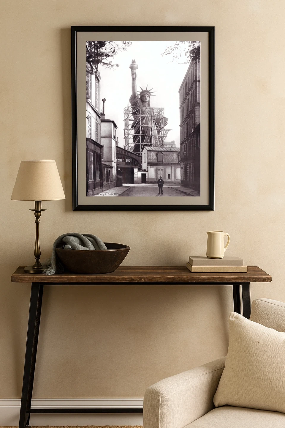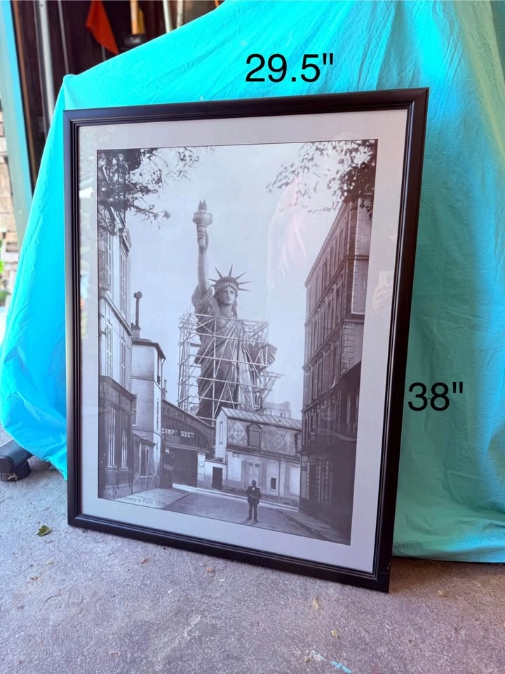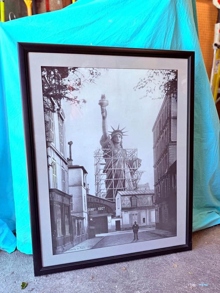 Construction of the Statue of Liberty in Paris, before shipping to New York. Print with frame measures 29.5" x 38" Pick up only.
