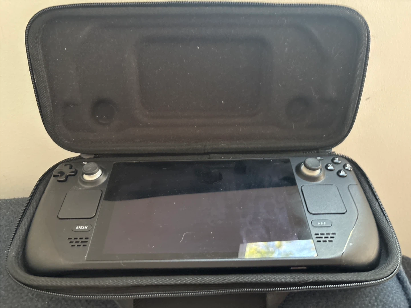 Selling a Steam Deck handheld gaming console. It comes with its original carrying case, perfect for protecting it on the go. It's in great condition and ready for a new owner to enjoy! used only 3 times