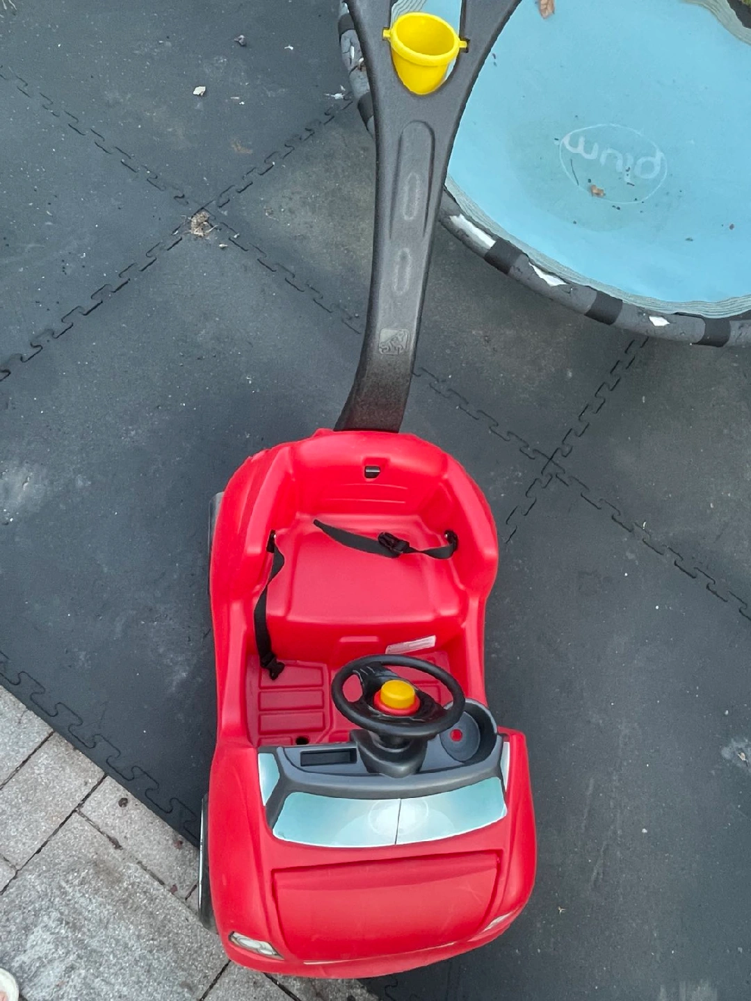 10Selling a red Step2 Push Around Buggy ride-on car! It's in great condition and ready for a new little driver. Perfect for toddlers who are just learning to walk and explore. This buggy features a comfortable seat with a safety belt, a steering wheel and a bottle holder.