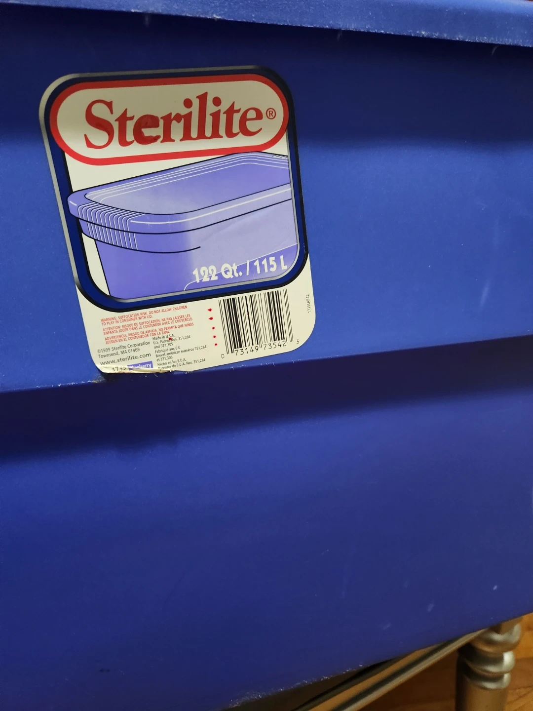 10Selling a Sterilite storage tote. It's a large size, 122 Qt or 115 L. Great for storing all sorts of items!