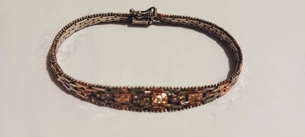 1000+Selling a vintage Sterling silver 925 Italy tri-color woven bracelet. It features silver, gold, and rose gold tones. The bracelet has a unique design with small beaded edges and decorative accents. It's in good condition and ready to add a touch of elegance to your wrist. 7". Excellent condition. ALL MY PRICES ARE NEGOTIABLE !!!