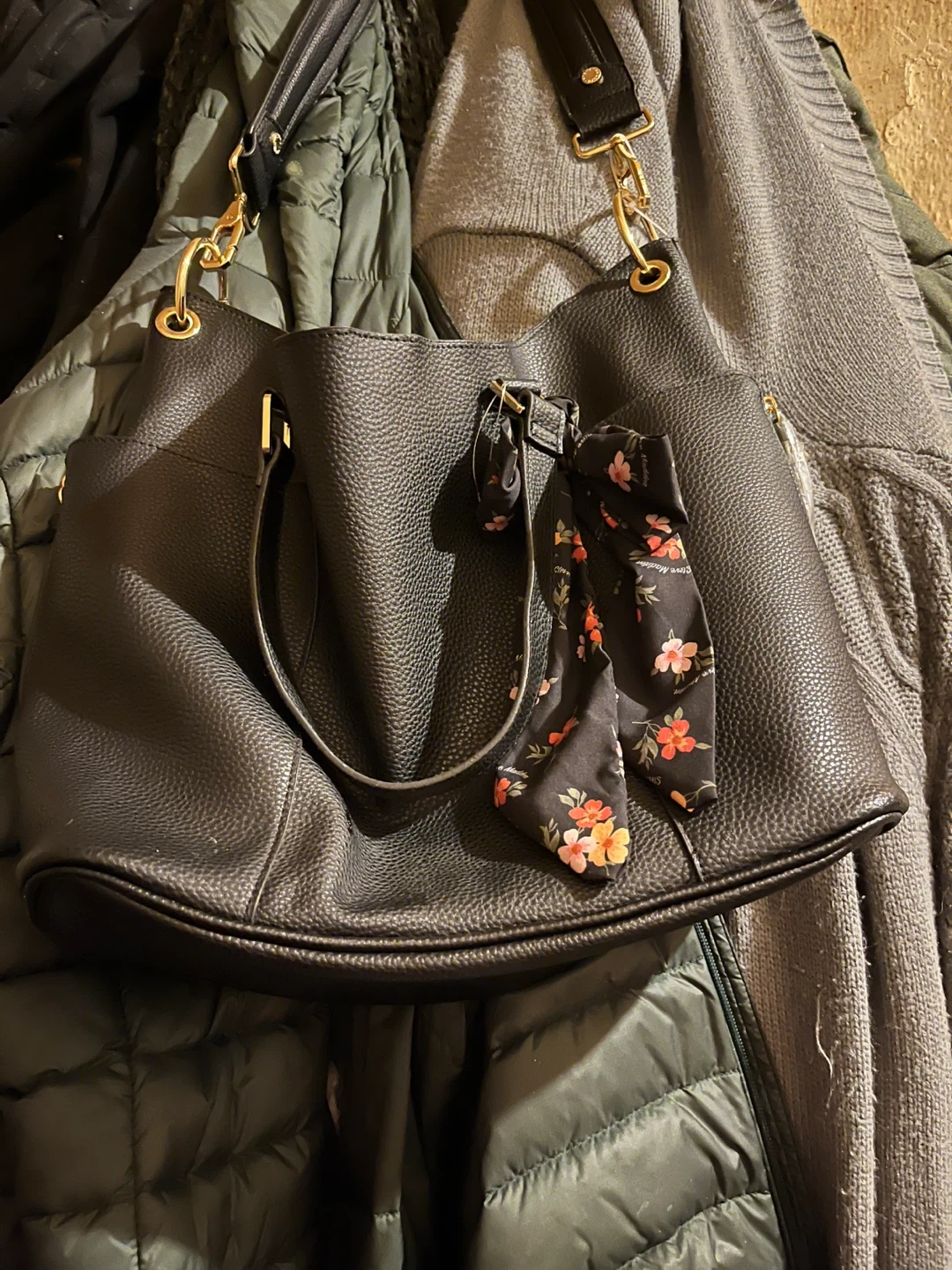 15I'm selling a Steve Madden black tote bag! It's in great condition and ready for a new home. The bag features gold-tone hardware and a pebbled texture. Perfect for carrying all your essentials!