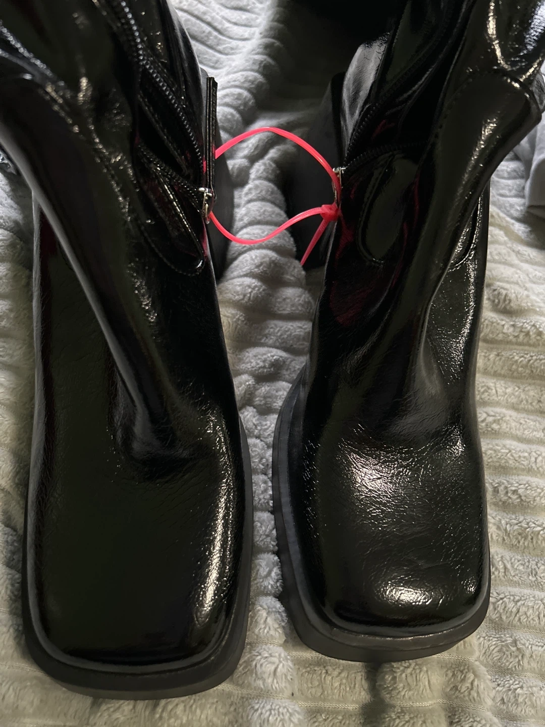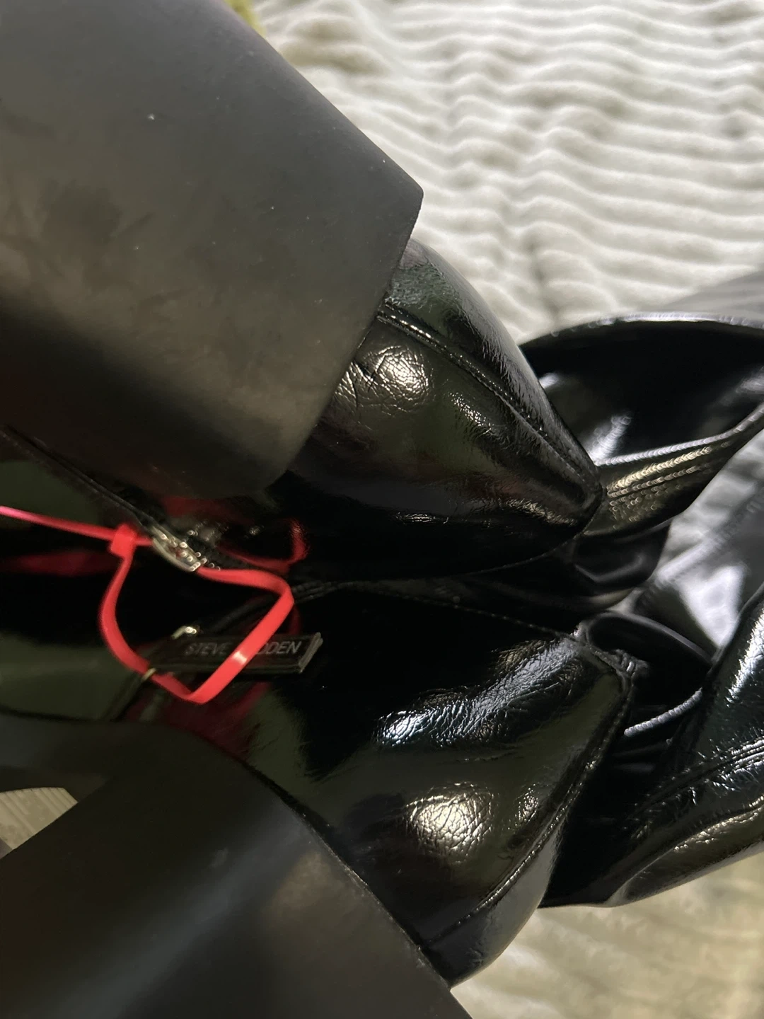 20Selling a pair of Steve Madden Kolby thigh-high boots in black patent leather! These are a size 9 and have a stylish, chunky heel. Perfect for adding a statement to your outfit