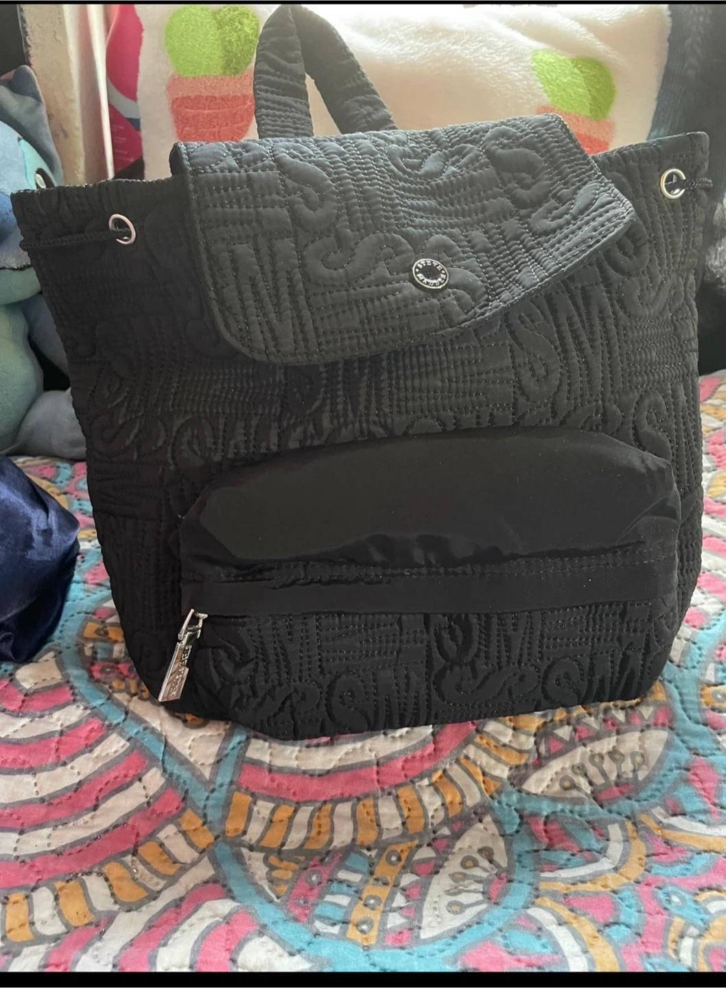 75This is a cute Steve Madden backpack in black! It's in great condition and ready for a new home. Never used. Tags still on it. It came in a gift set, I'm only including the bag. The bag still has the alarm on actually.