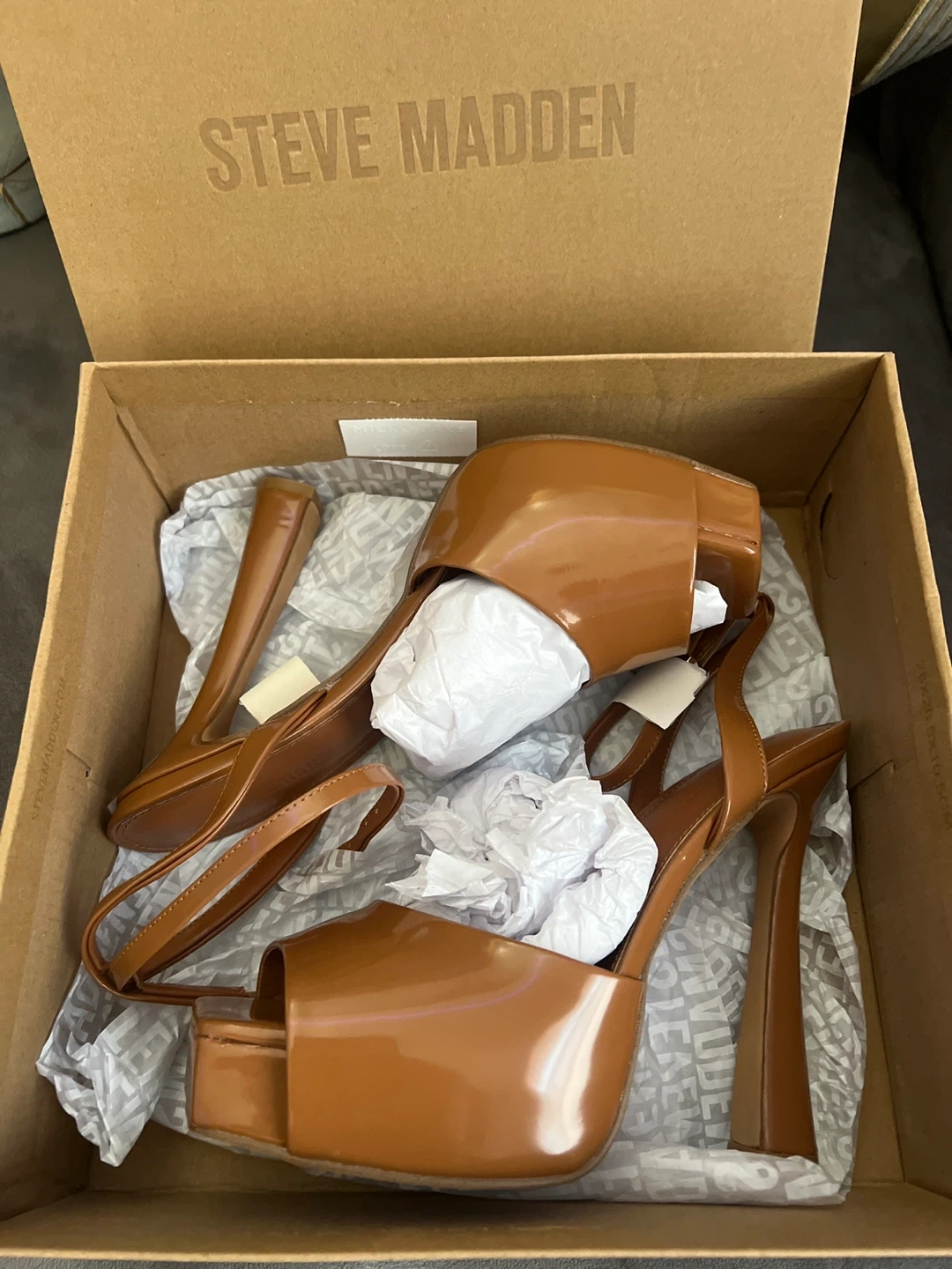 These Steve Madden platform heels are in great condition and come with the original box! They are a beautiful caramel color and a size 8.5. Perfect for adding a bit of height and style to any outfit
