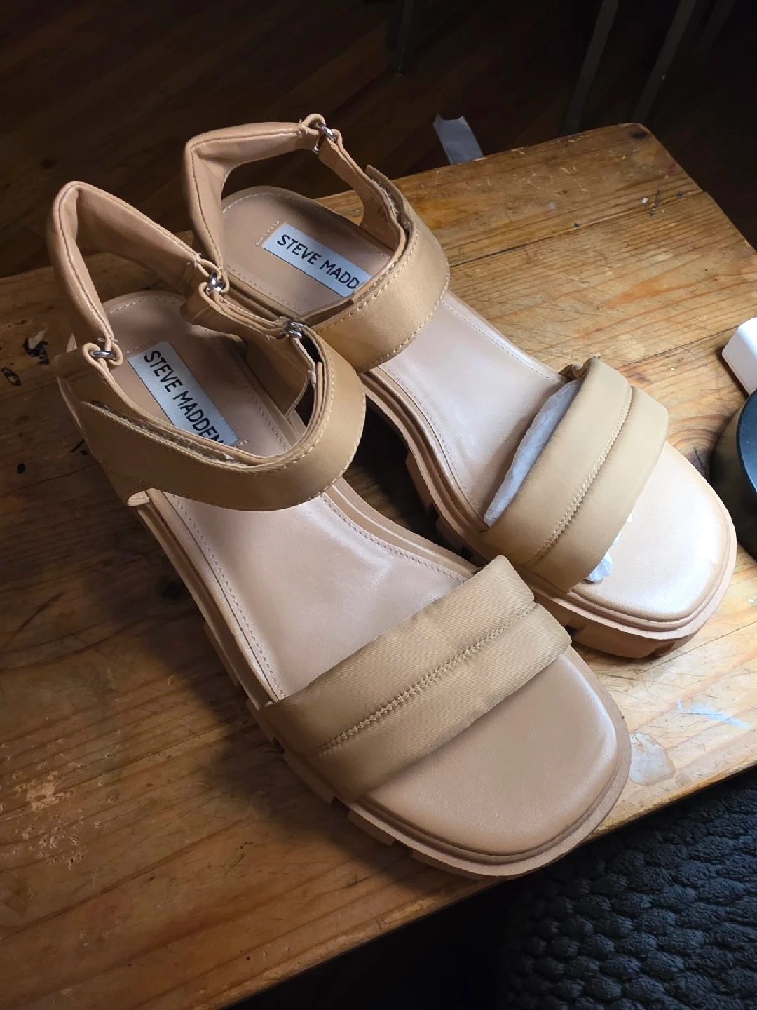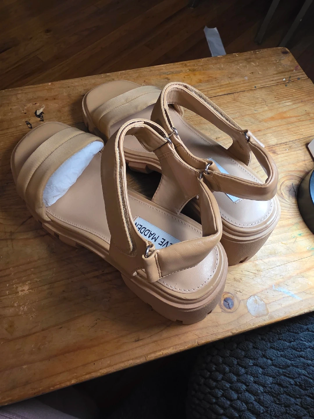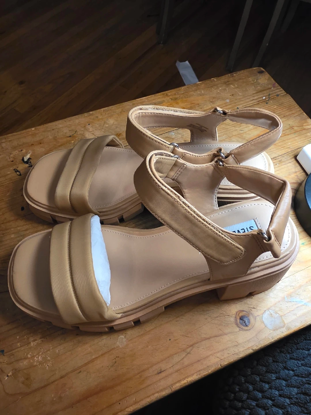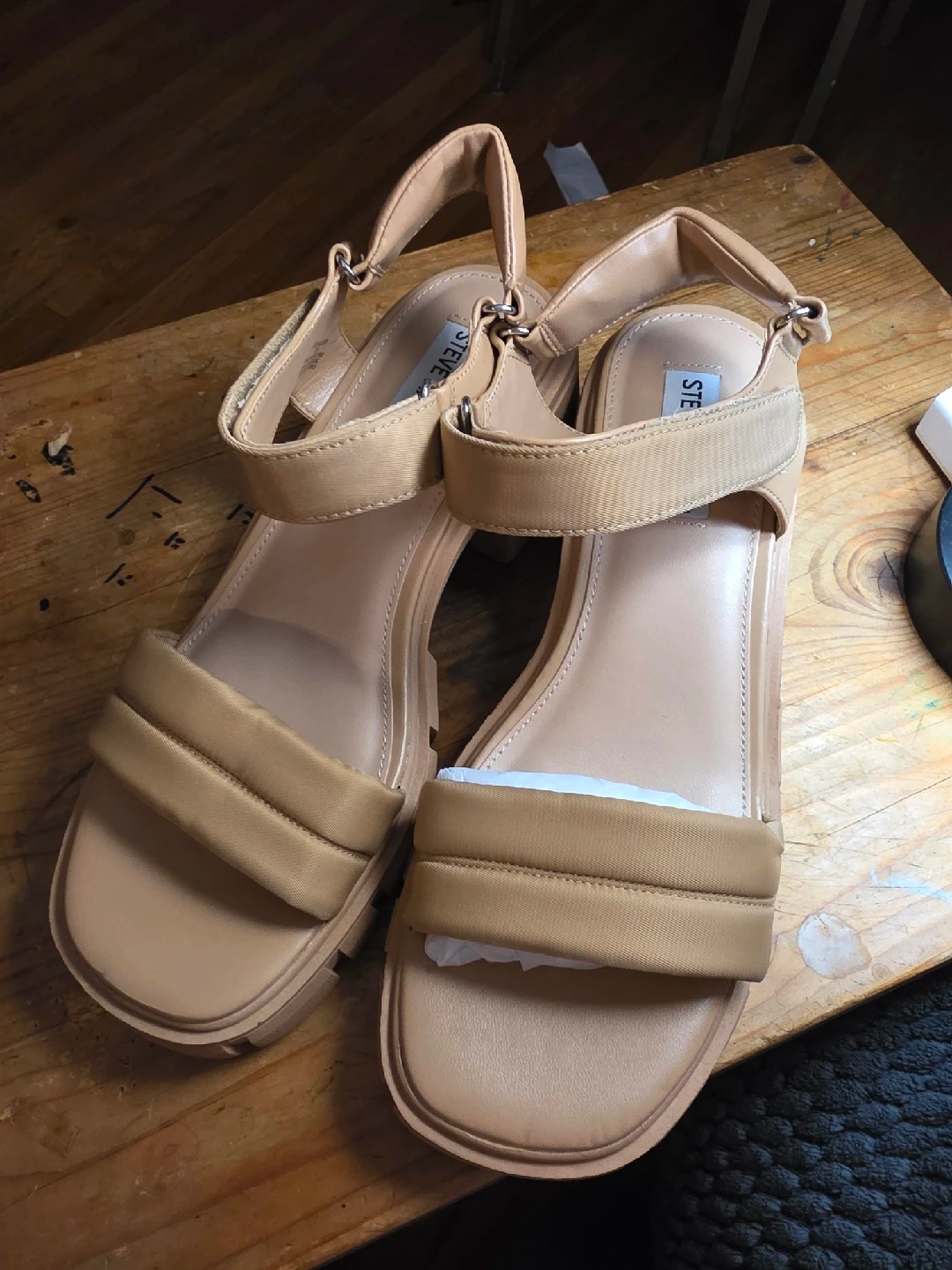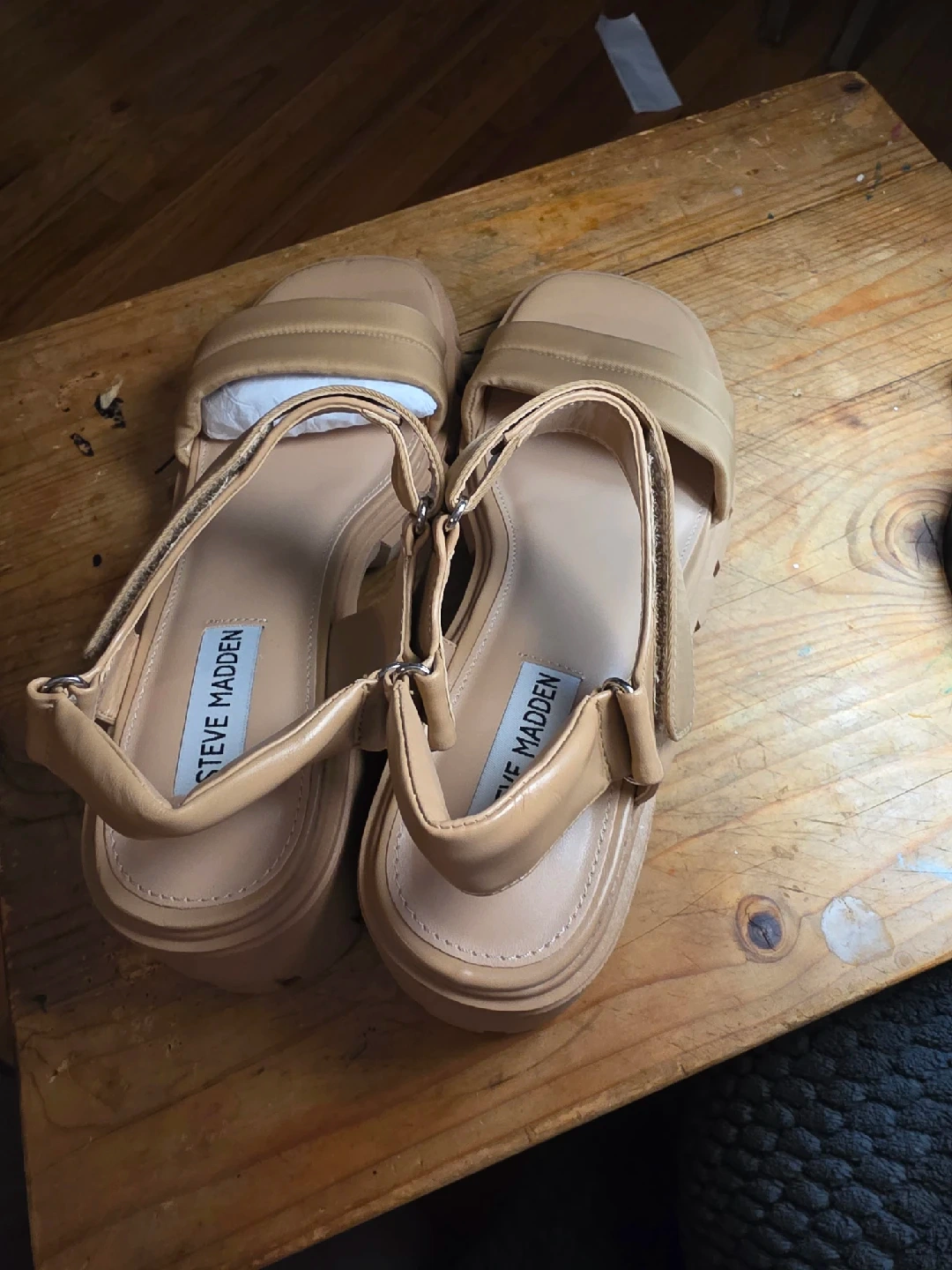 15These Steve Madden platform sandals are in great condition and ready for a new home! They're a size 8 and feature a stylish, chunky platform sole. Perfect for adding a bit of height and a trendy touch to any outfit!