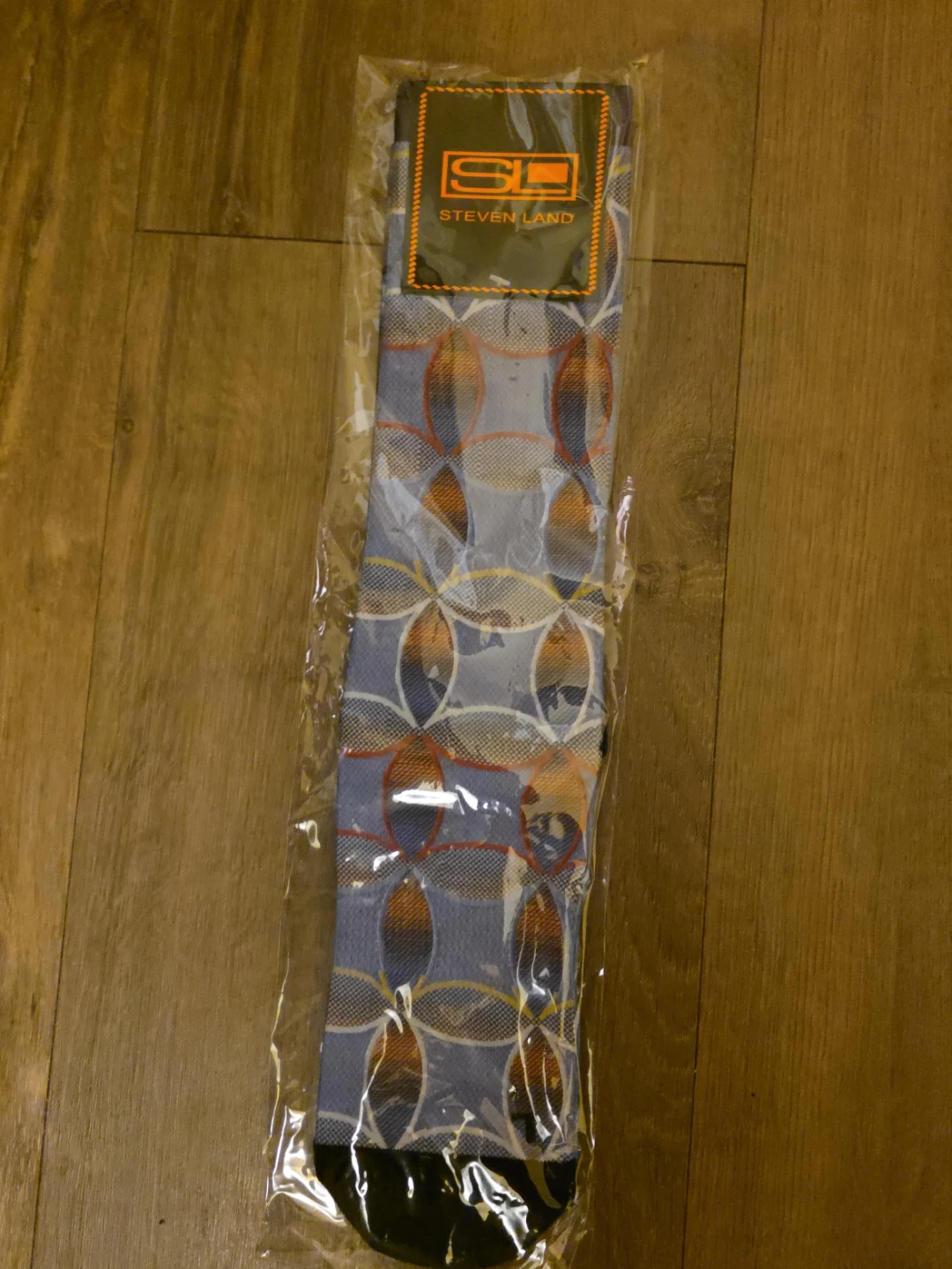 60New Steven Land socks, still in the original packaging! The socks feature a unique pattern with blue, white, orange, and yellow colors. Perfect for adding a touch of style to your wardrobe