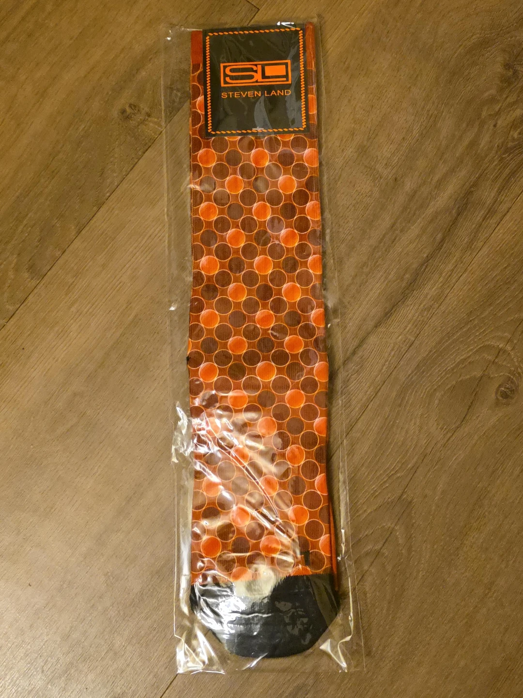 60Here are some brand new Steven Land socks! They have a cool orange and brown circle pattern. Perfect for adding a bit of style to your outfit