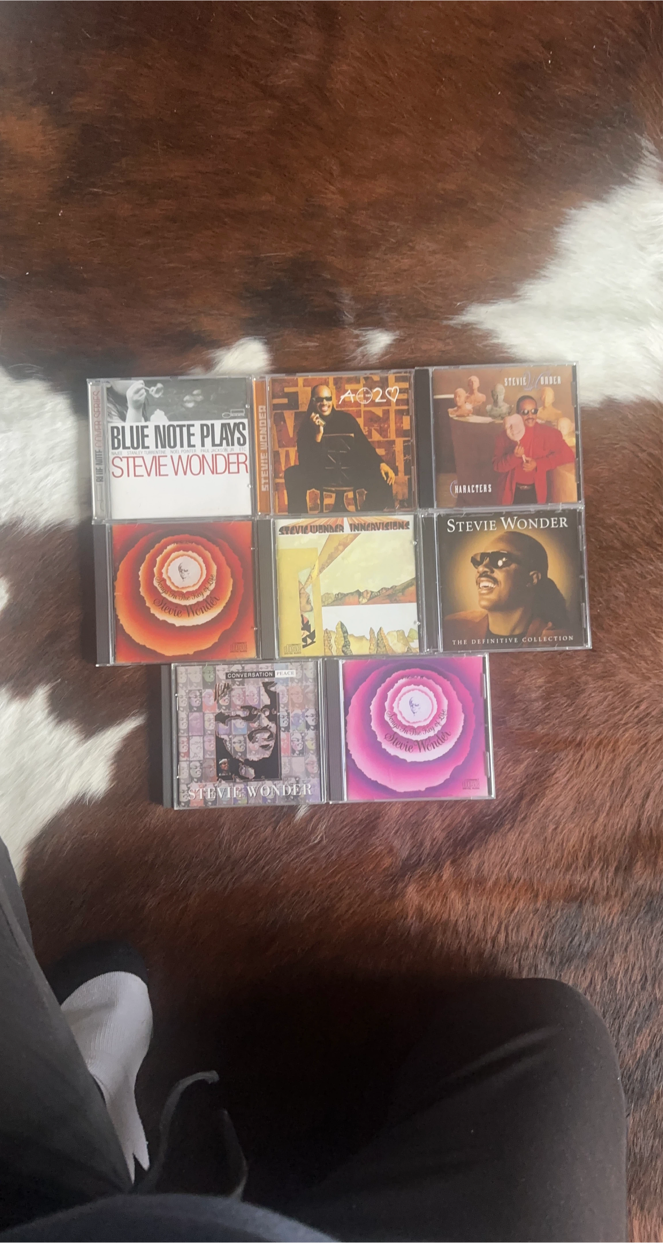 64Selling a collection of Stevie Wonder CDs! Includes titles like Blue Note Plays Stevie Wonder, A20, Characters, Innervisions, Conversation Peace, The Definitive Collection, and Songs In The Key of Life