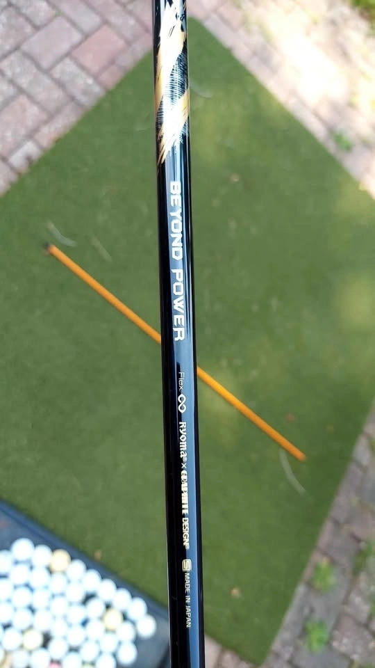 RYOMA Maxima driver with BEYOND POWER shaft. Length: 46.5 inches. The face is clean. The crown has a small dent that does not affect playability, which is why it's priced lower. The Beyond Power Shaft is made by Graphite Design in collaboration with Ryoma’s designers and works for golfers with swing speeds from 67mph to 111mph. It is very similar to an AutoFlex shaft.