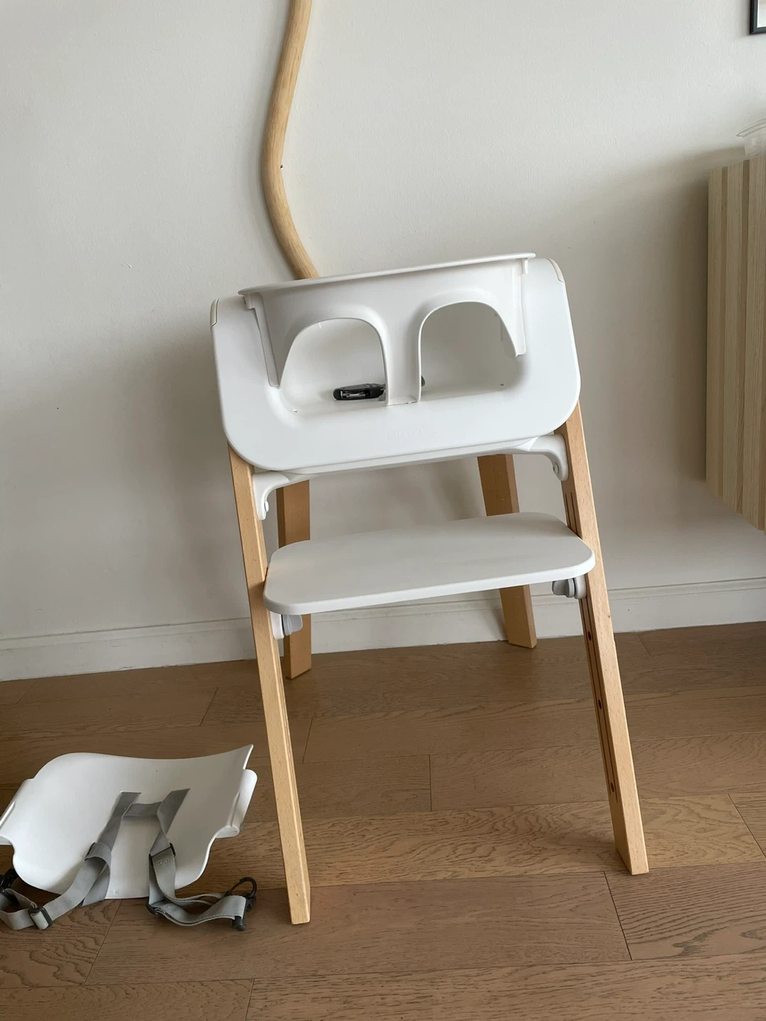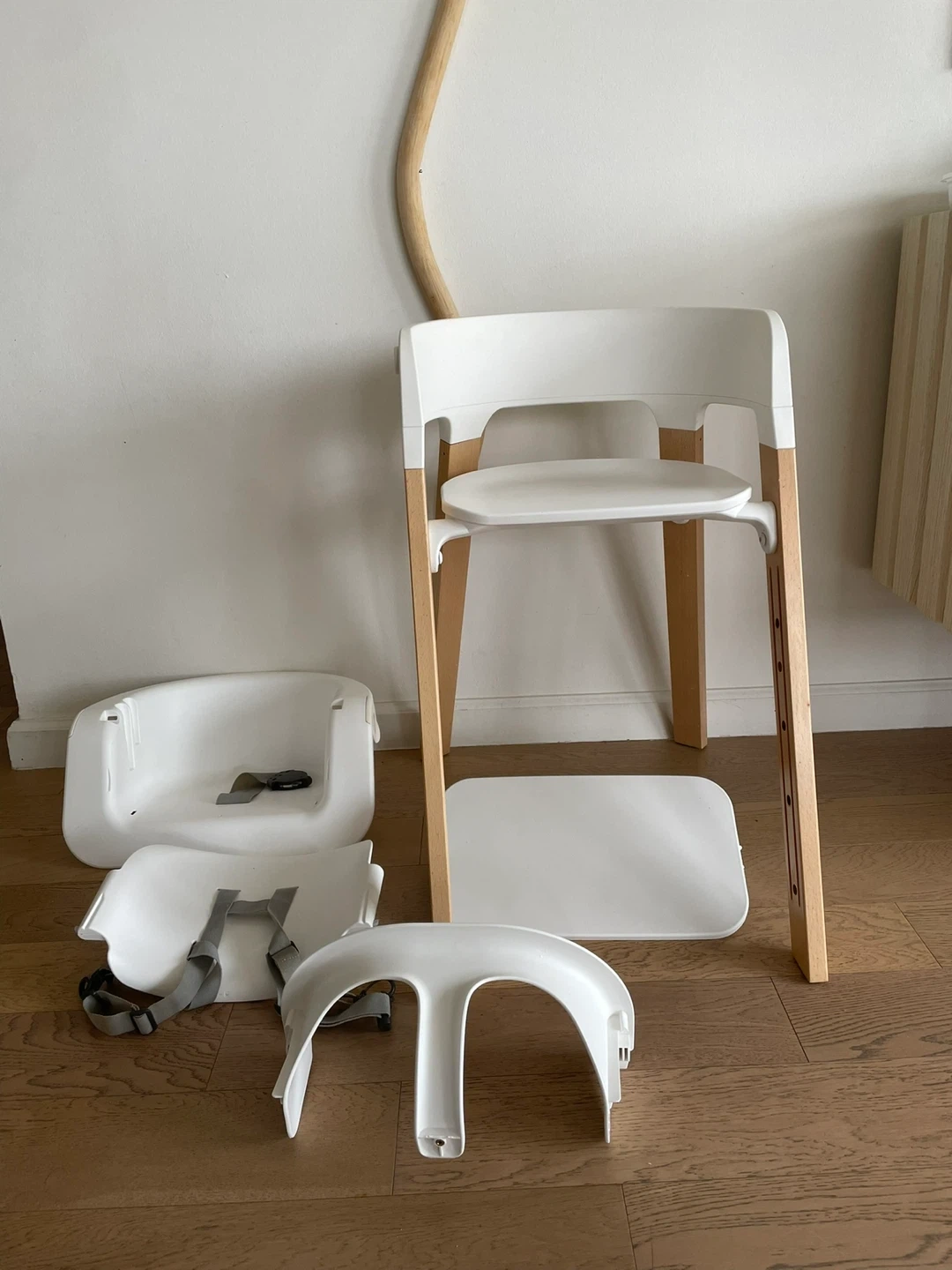 65Selling a Stokke Steps high chair! This chair is designed to grow with your child, providing a comfortable and ergonomic seat from babyhood through the teenage years. It's in great condition and ready for a new home. Comes with all the components pictured!